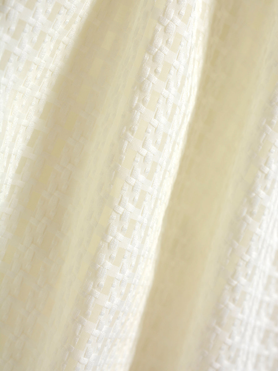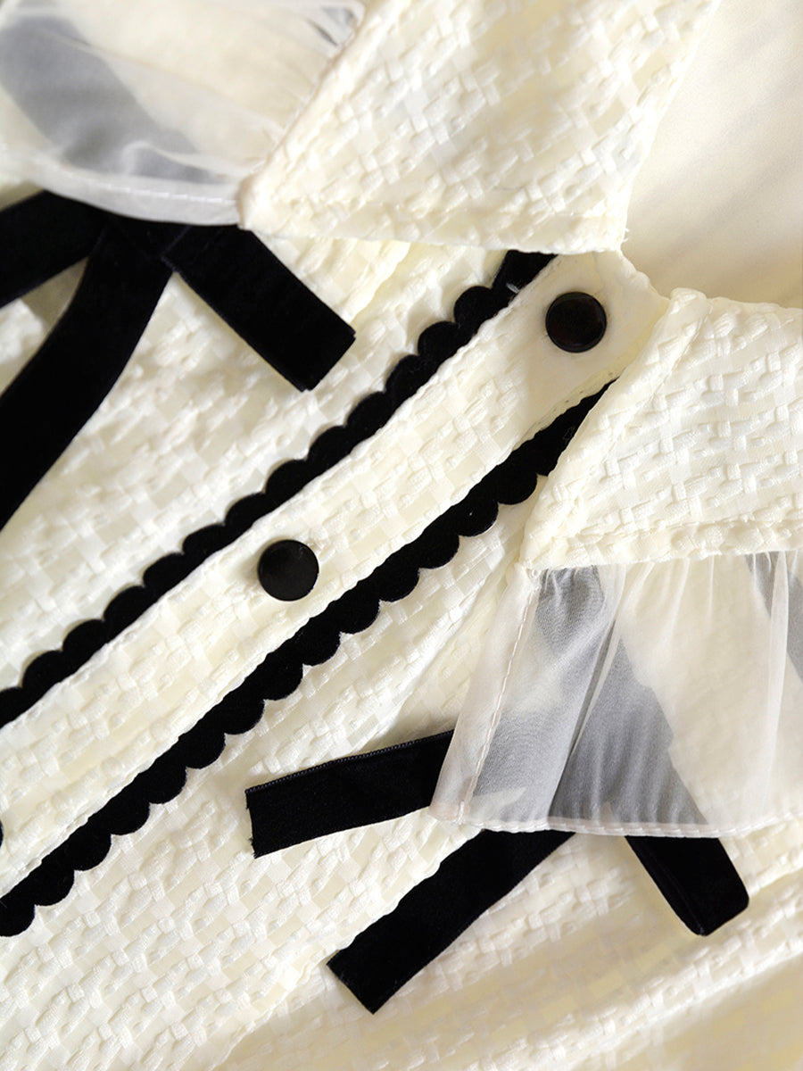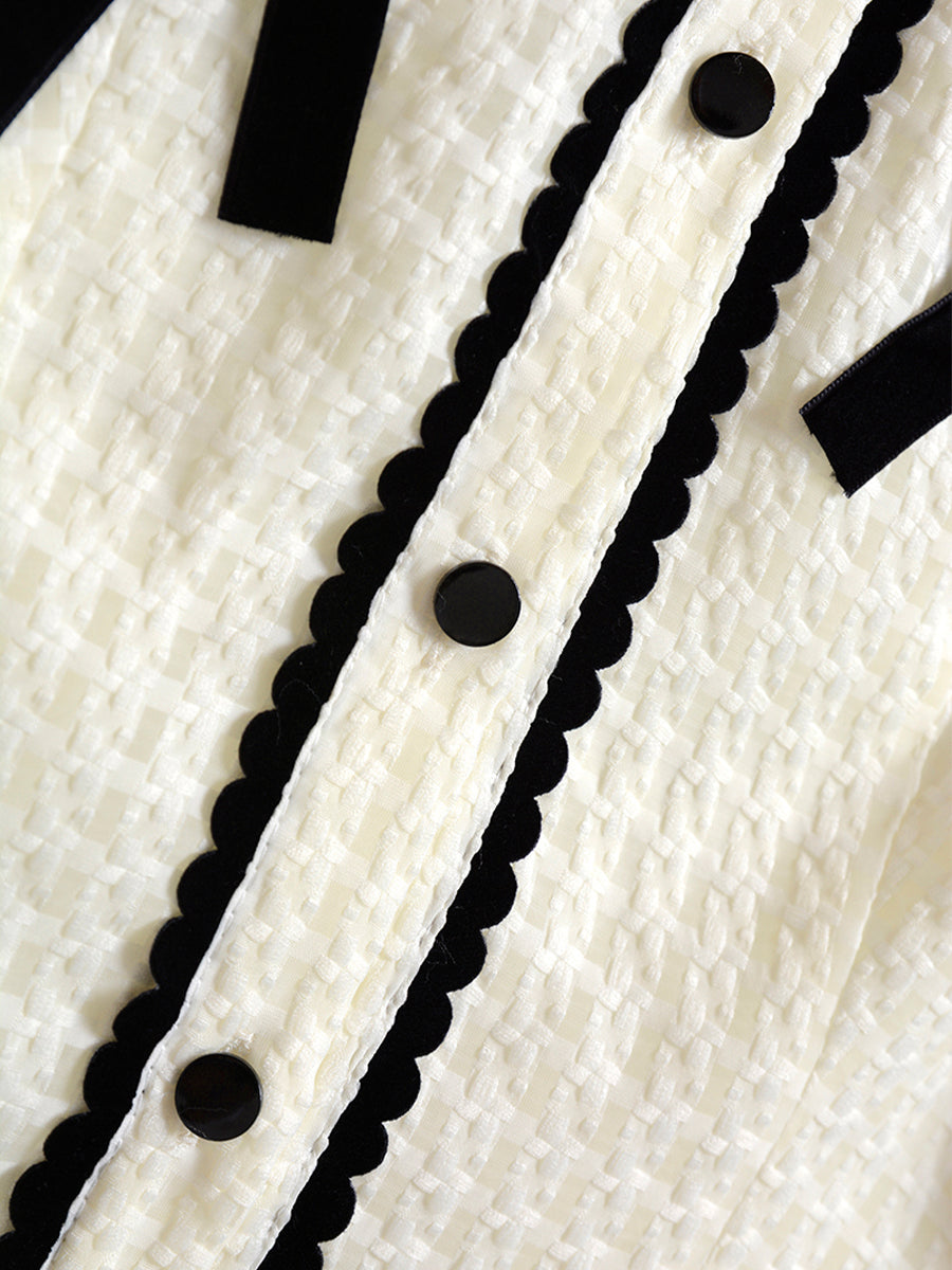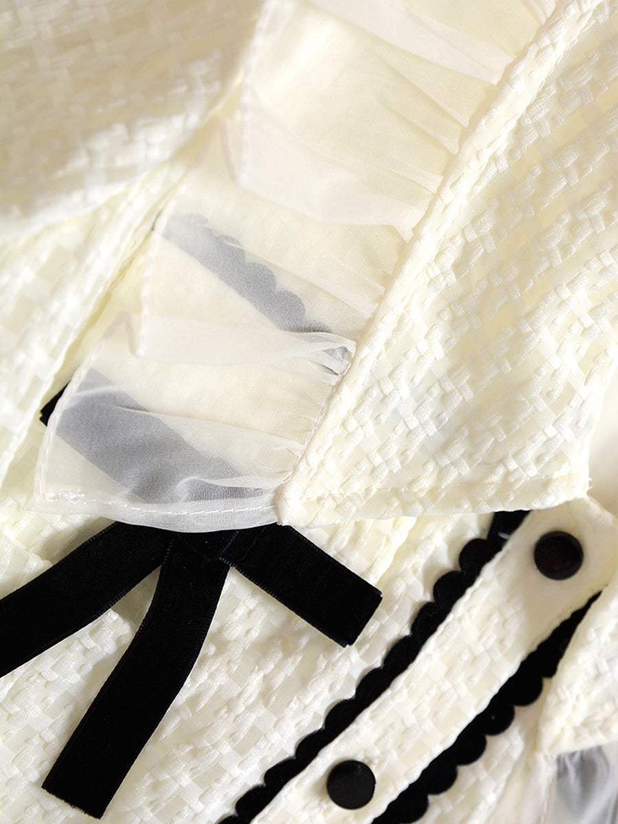 Checkered Lace Bow Apricot Dress
