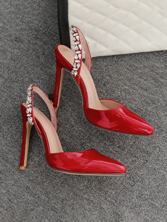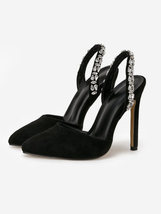 Rhinestone Embellished Stiletto Heel Sling Back Pumps