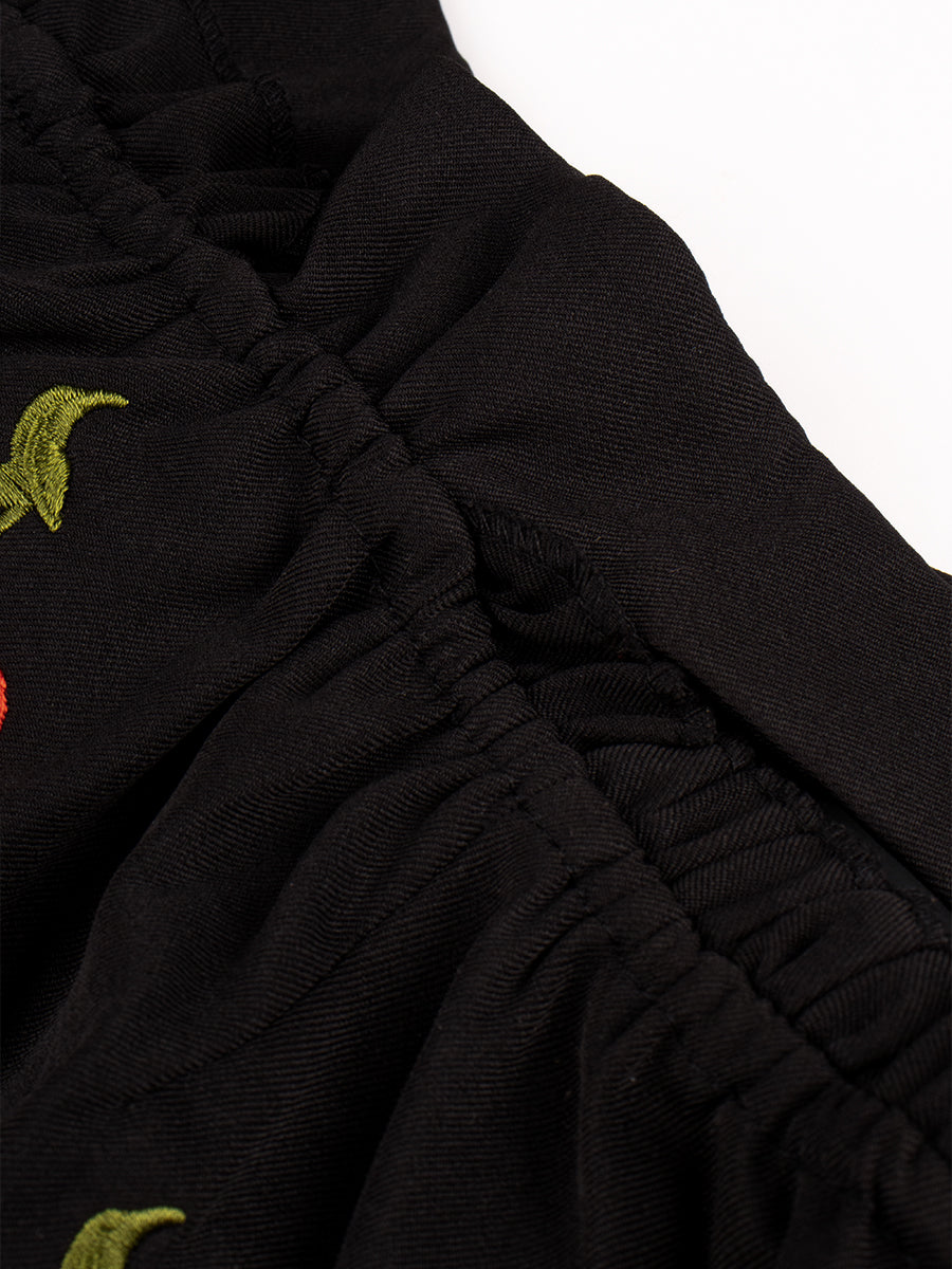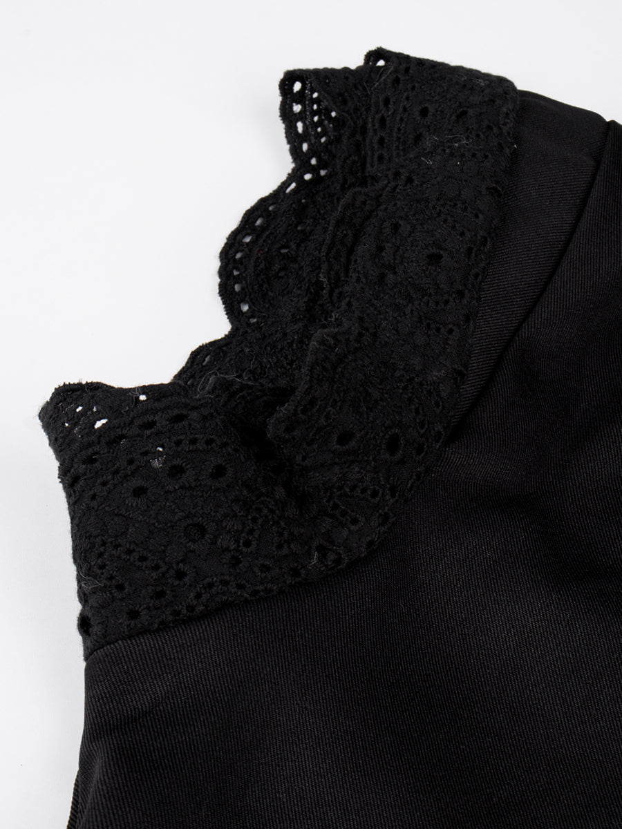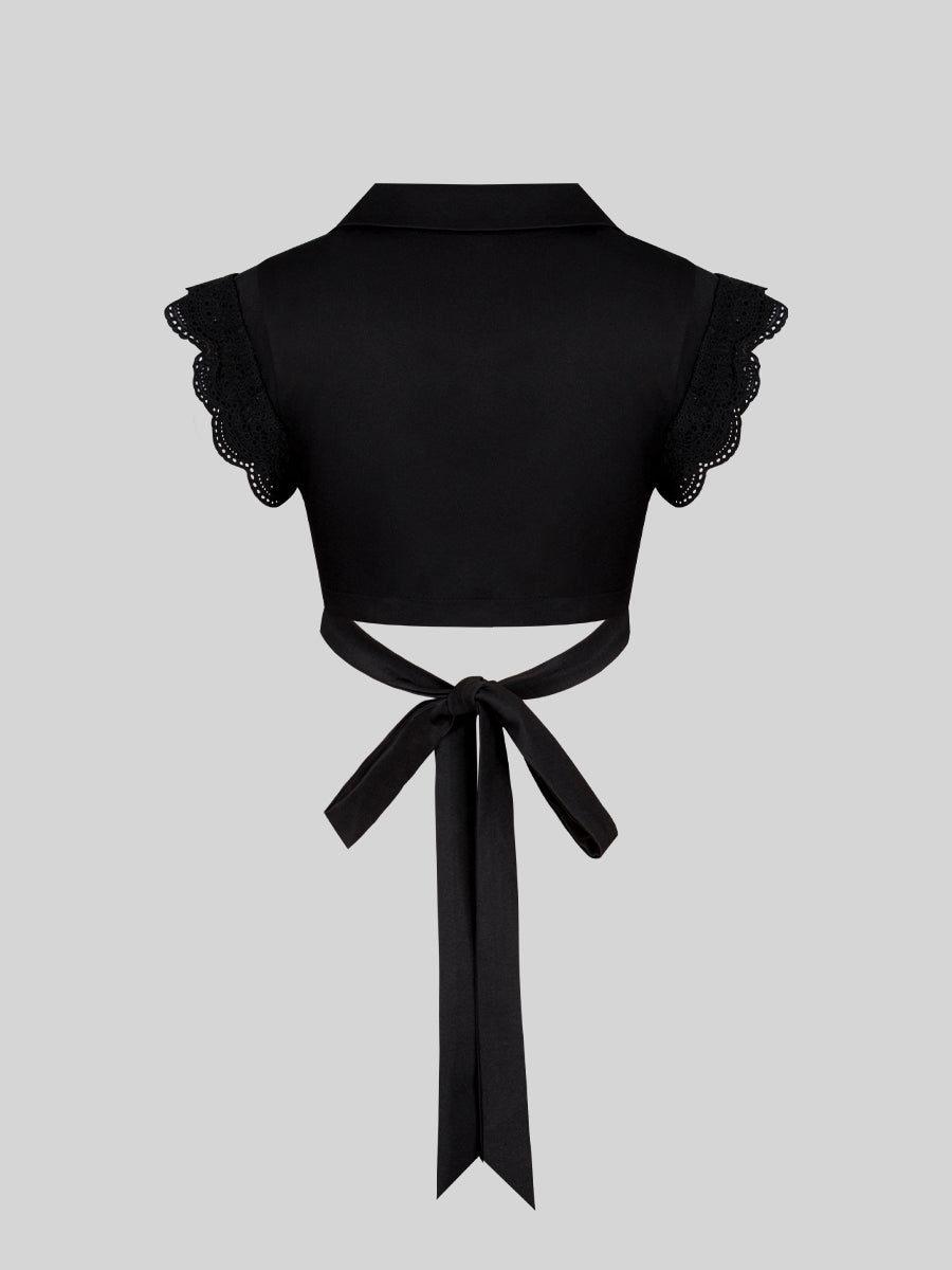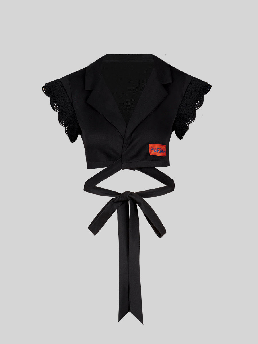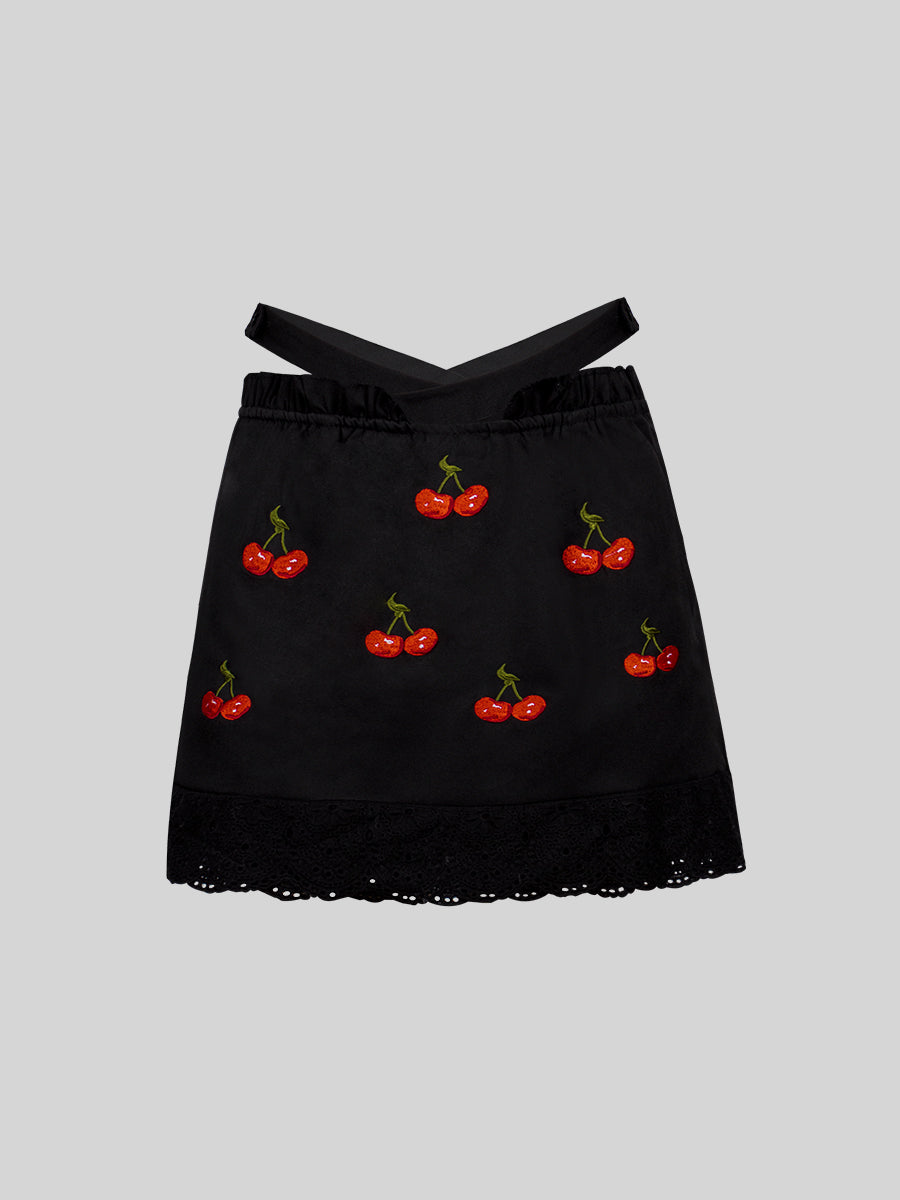 Lace Lace-up Shirt Top + Cherry Skirt Set