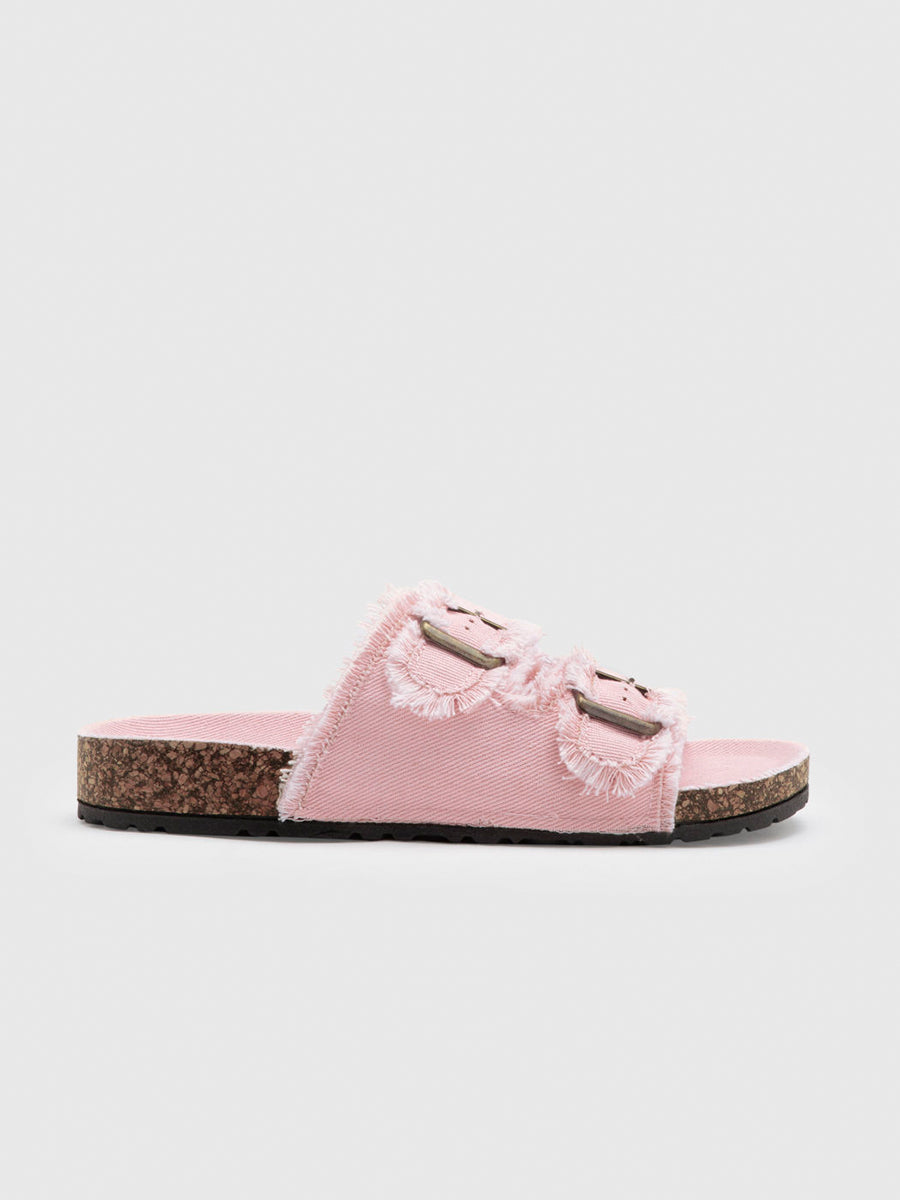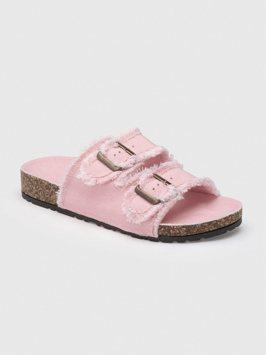 Denim Square Buckle Open Toe Thick Bottom Slippers