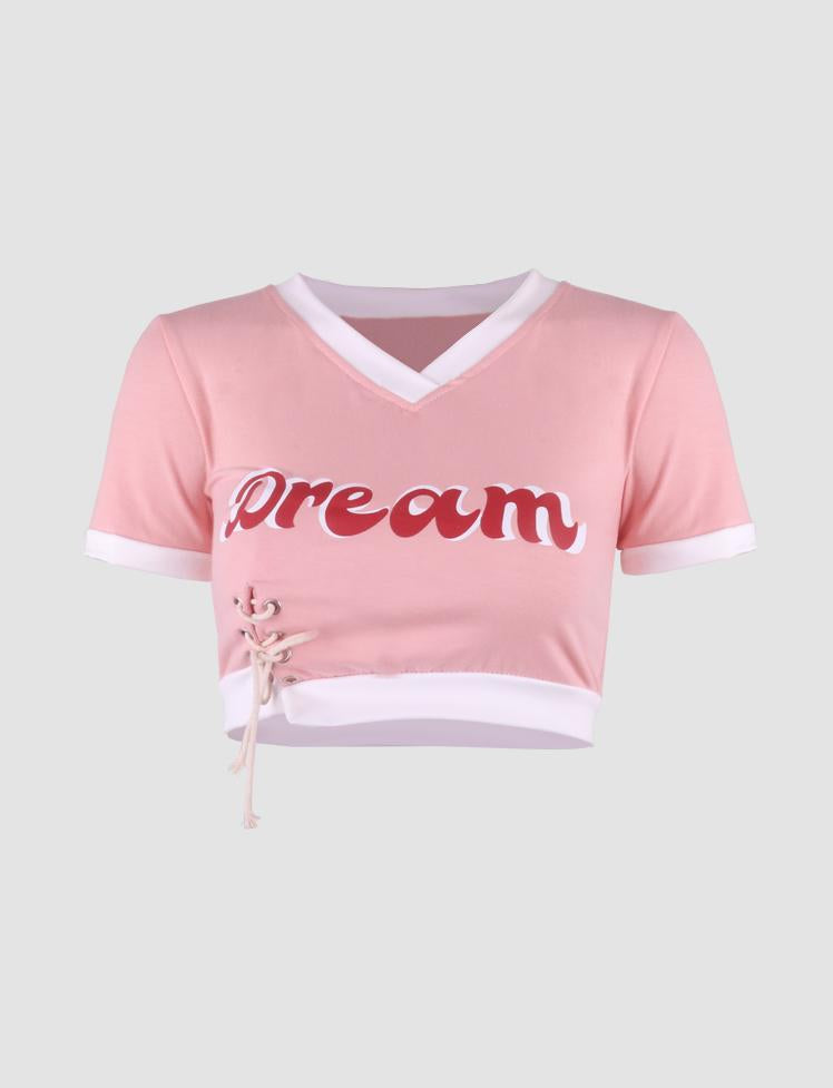 Dream Character V-Neck Pink Tops