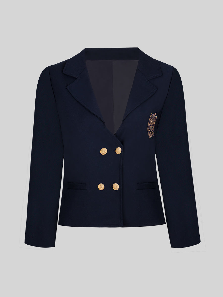 Embroidered Blazer Short Jacket + Pleated Skirt + Apricot Blouse Three Piece Set