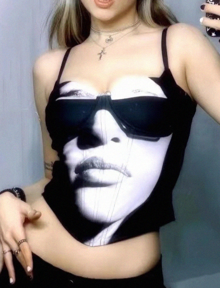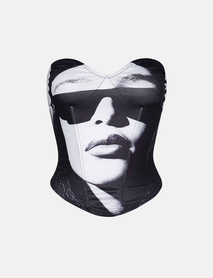 Face Print Off Shoulder Corset