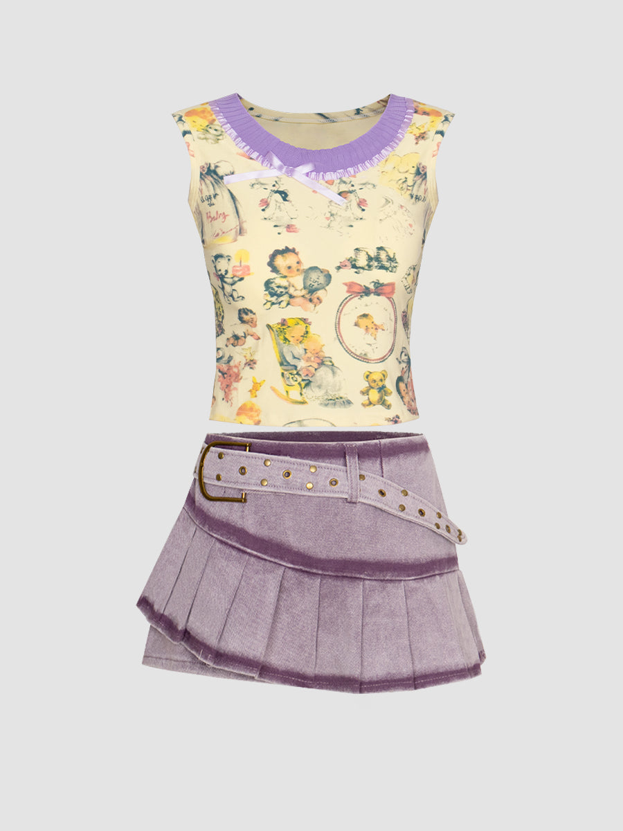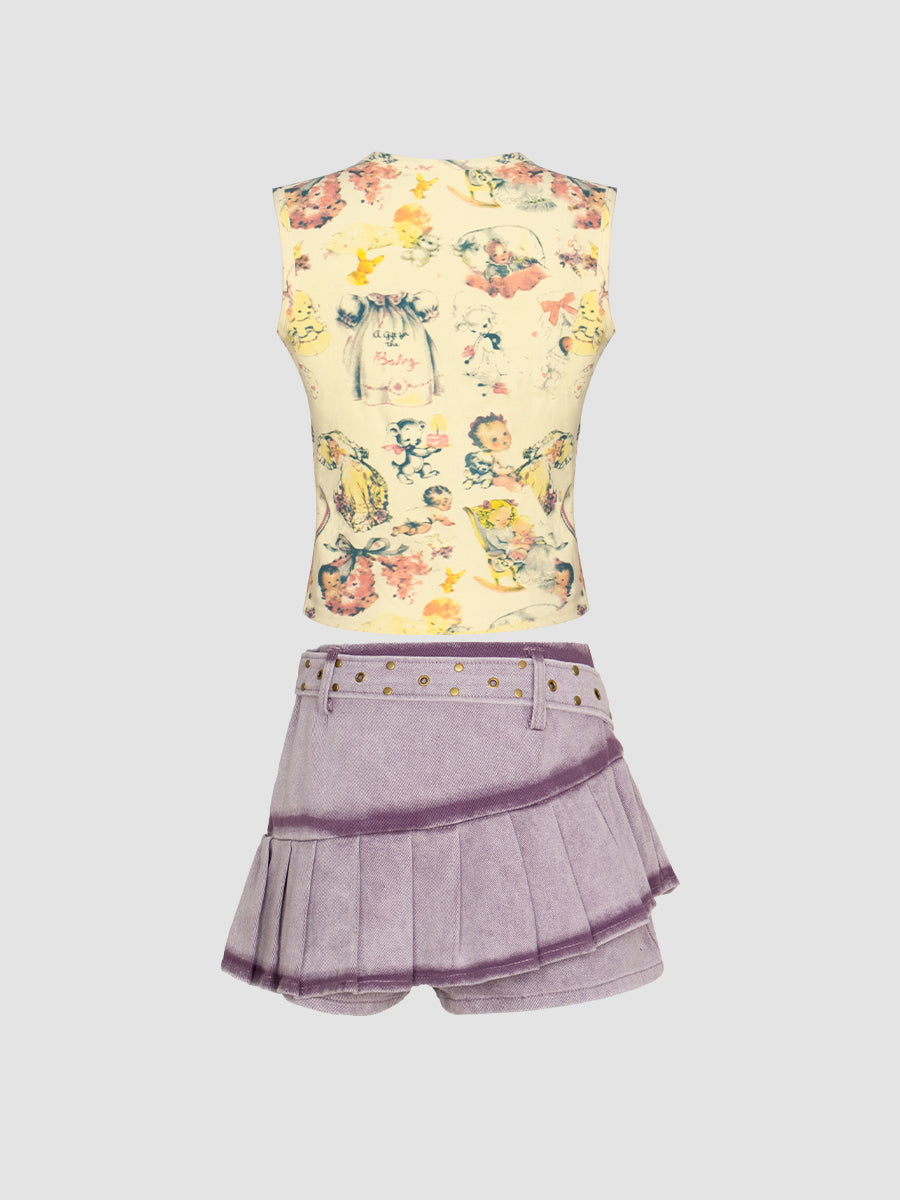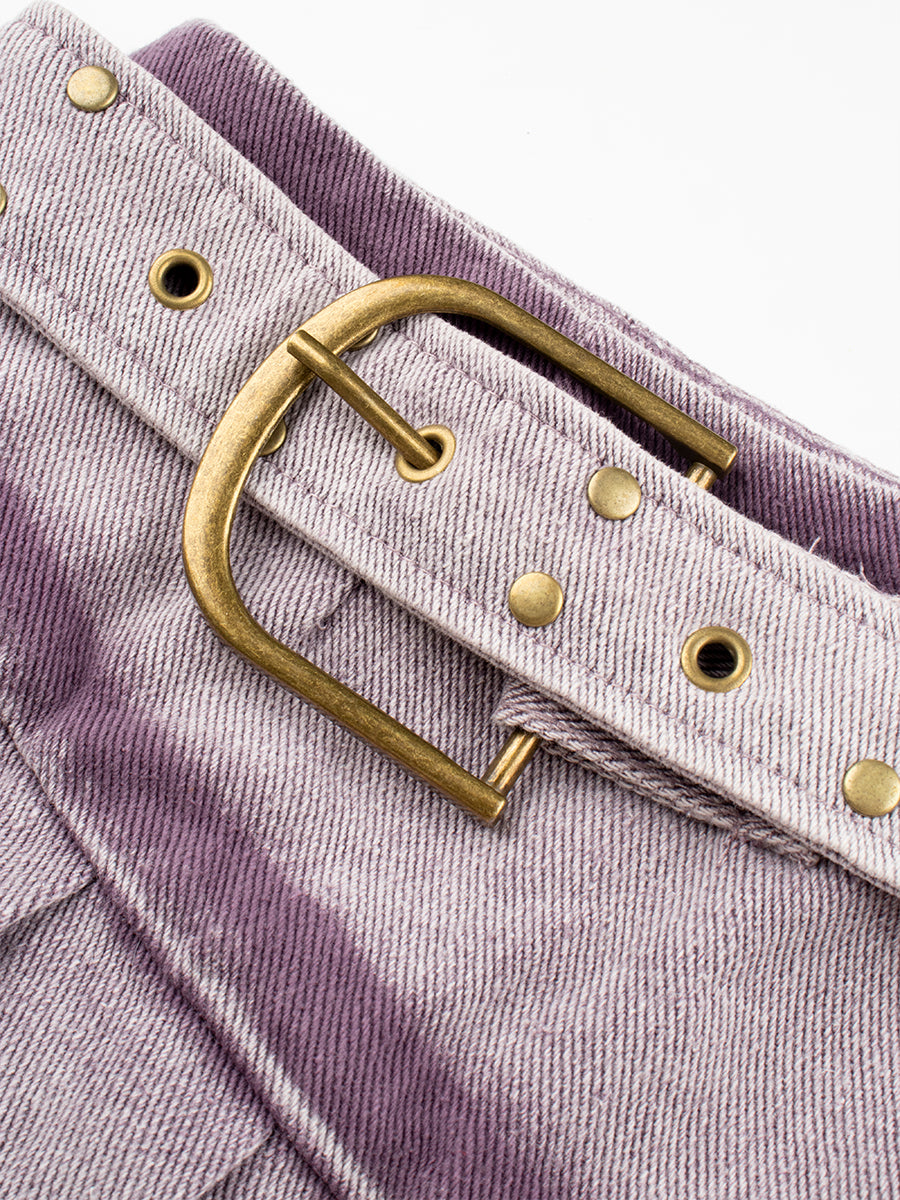 Fake Two Piece Patchwork Denim Pleated Hem Shorts