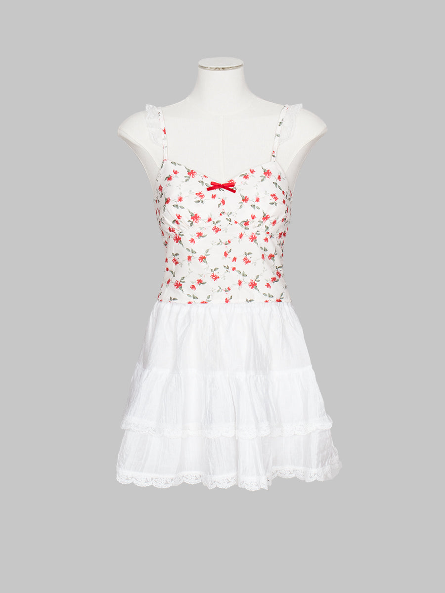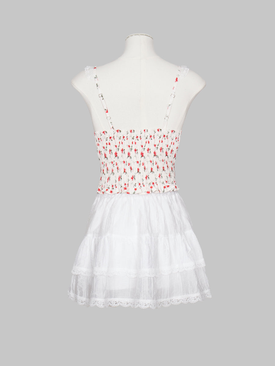 Floral Print Adjustable Lace Straps Cami Top