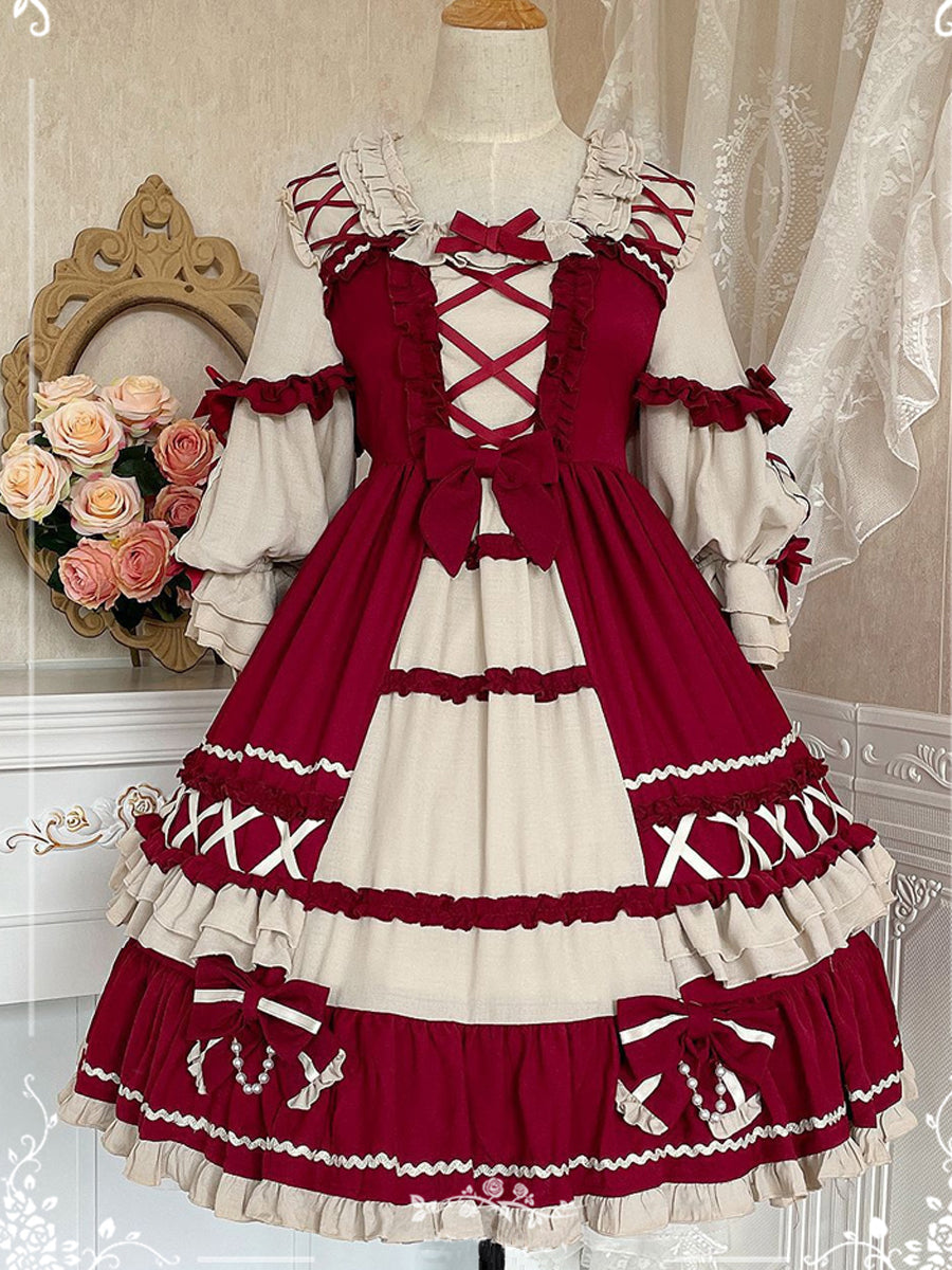 Girls Lolita Princess Dress Kawaii Long Sleeve Cute Layered Cake Dress
