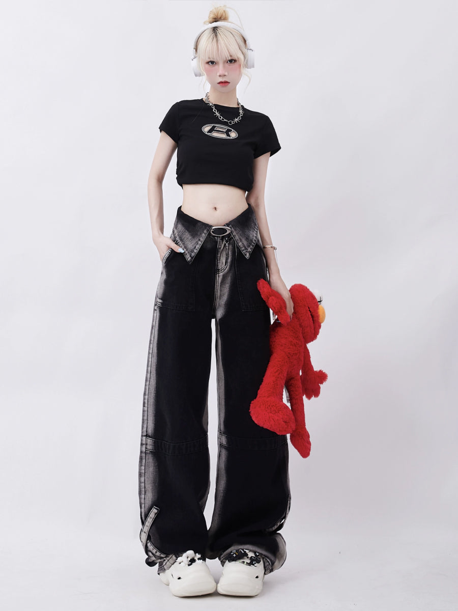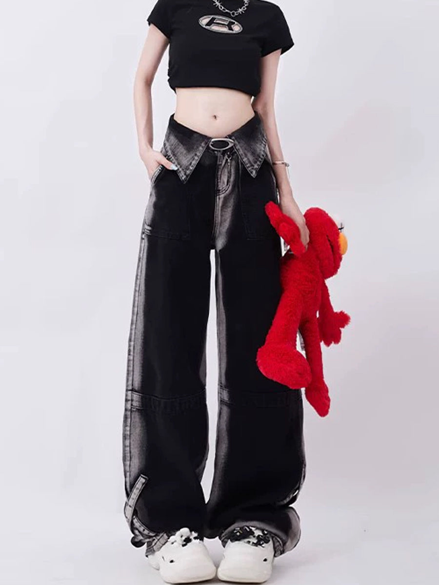 High Waisted Gray Loose Jeans