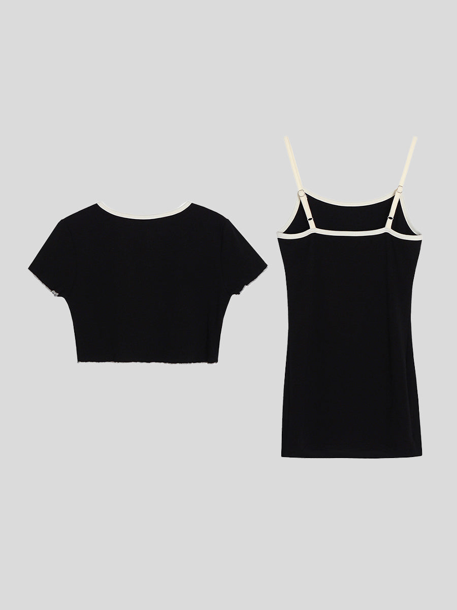 Kpop Knitted Patchwork Short Sleeve Top&Halter Dress Set