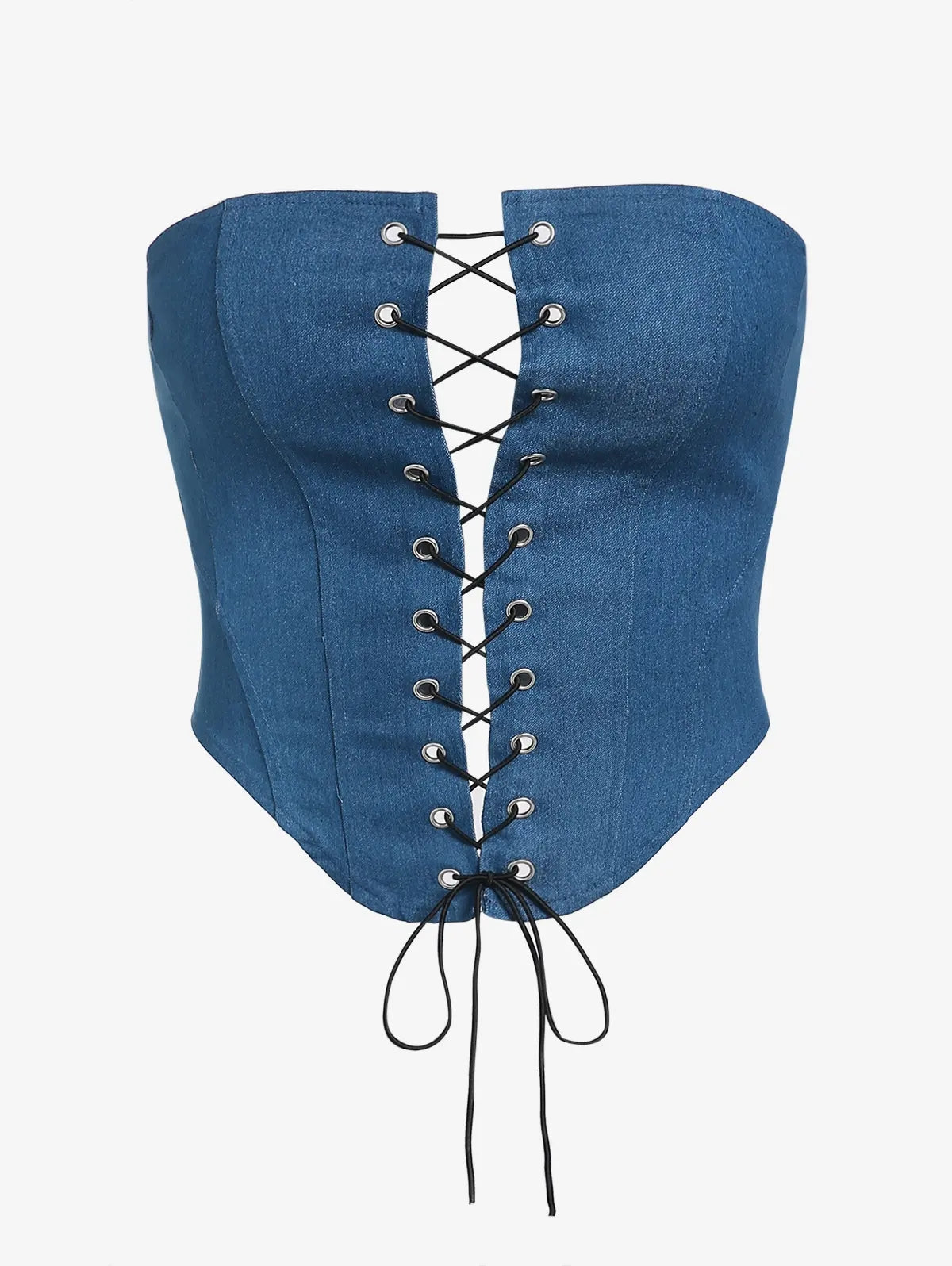Lace Up Corset-style Denim Strapless Tube Top