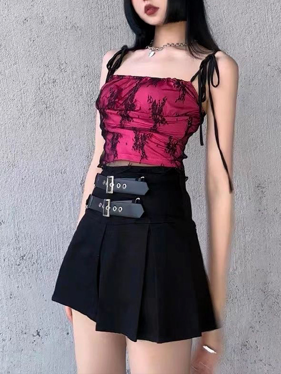 Leather Buckle Sexy Pleated Skirt