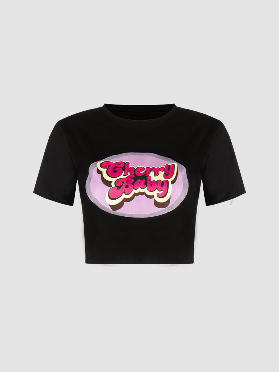 Letter Print Short Sleeve Waistless Slim Top
