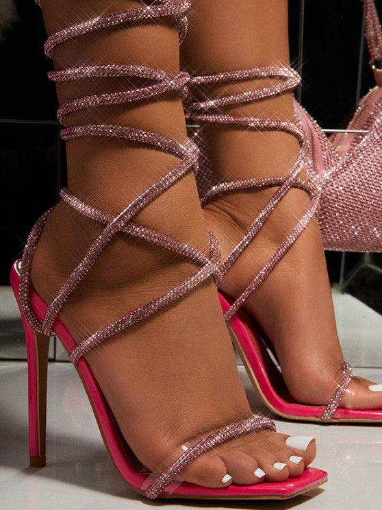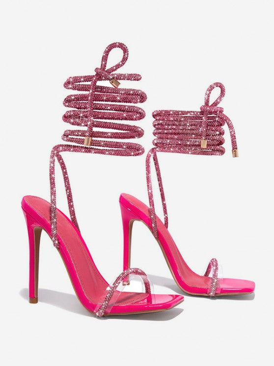 Metallic Sparkle Glitter Party Ankle Wrap Strappy Heeled Sandals
