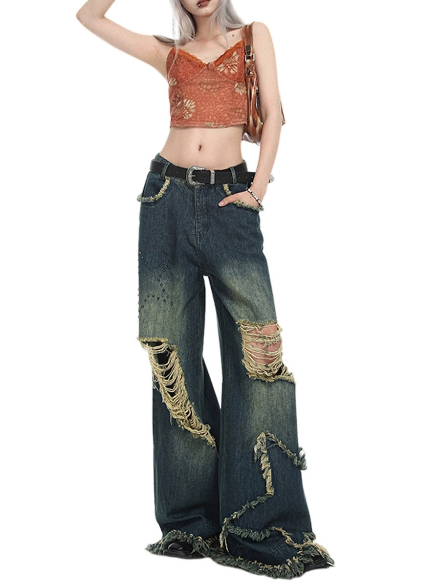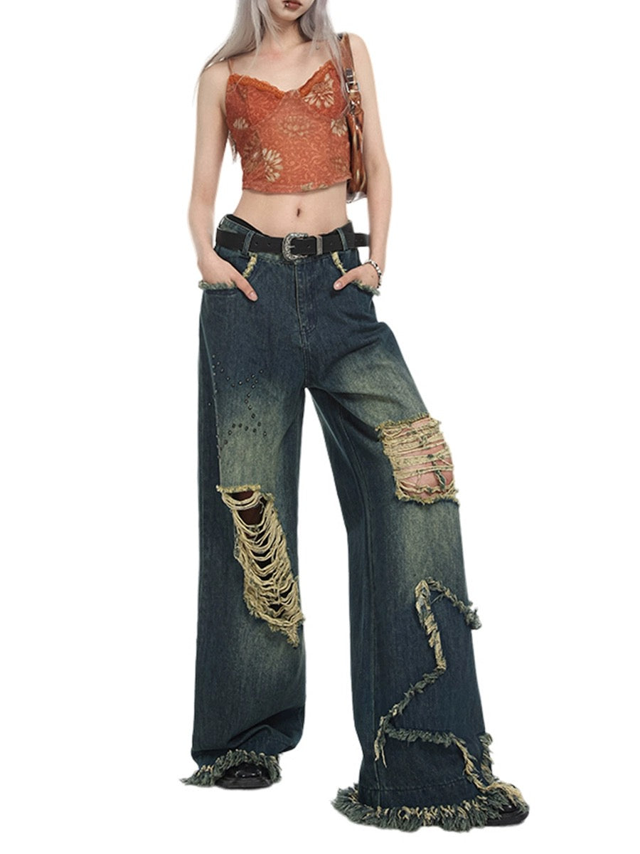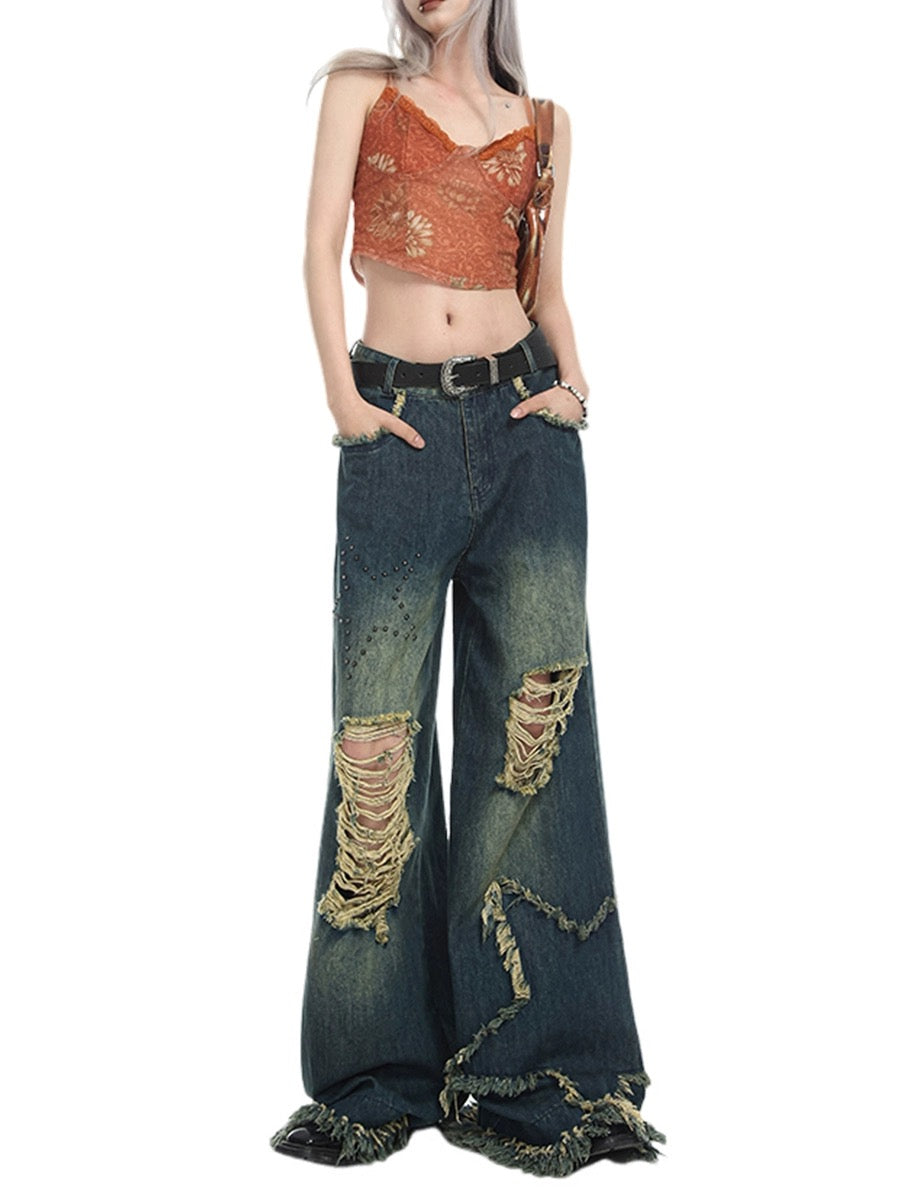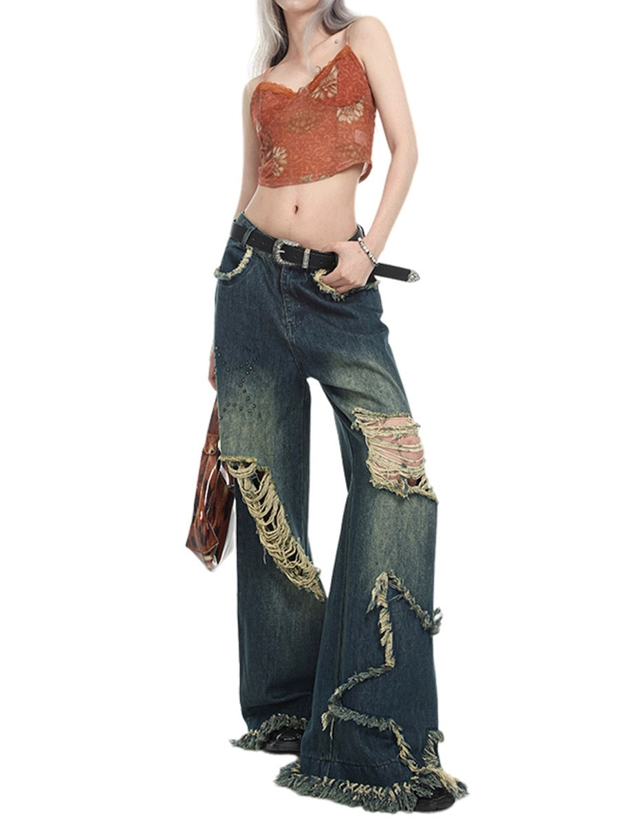 Stars High-Waisted Baggy Wide-Leg Ripped Jeans