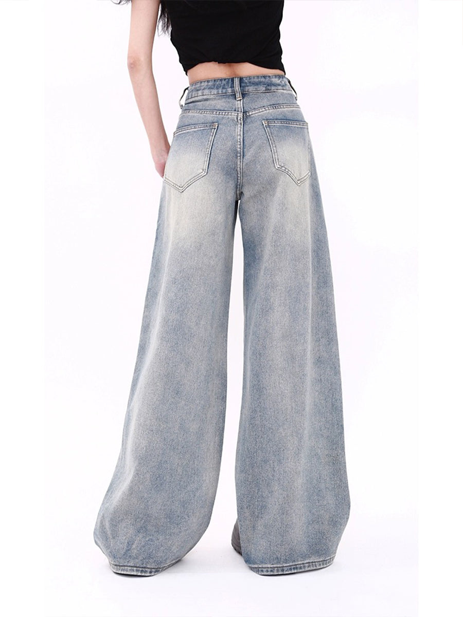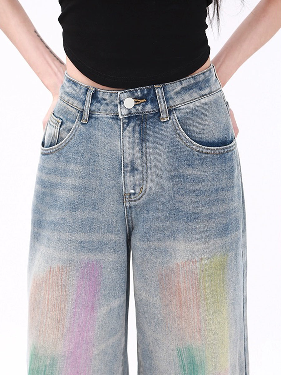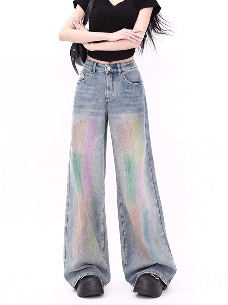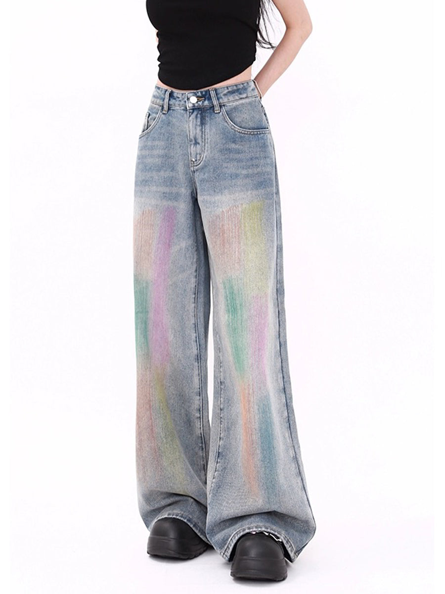 High-Waisted Rainbow Tie-Dye Loose Jeans