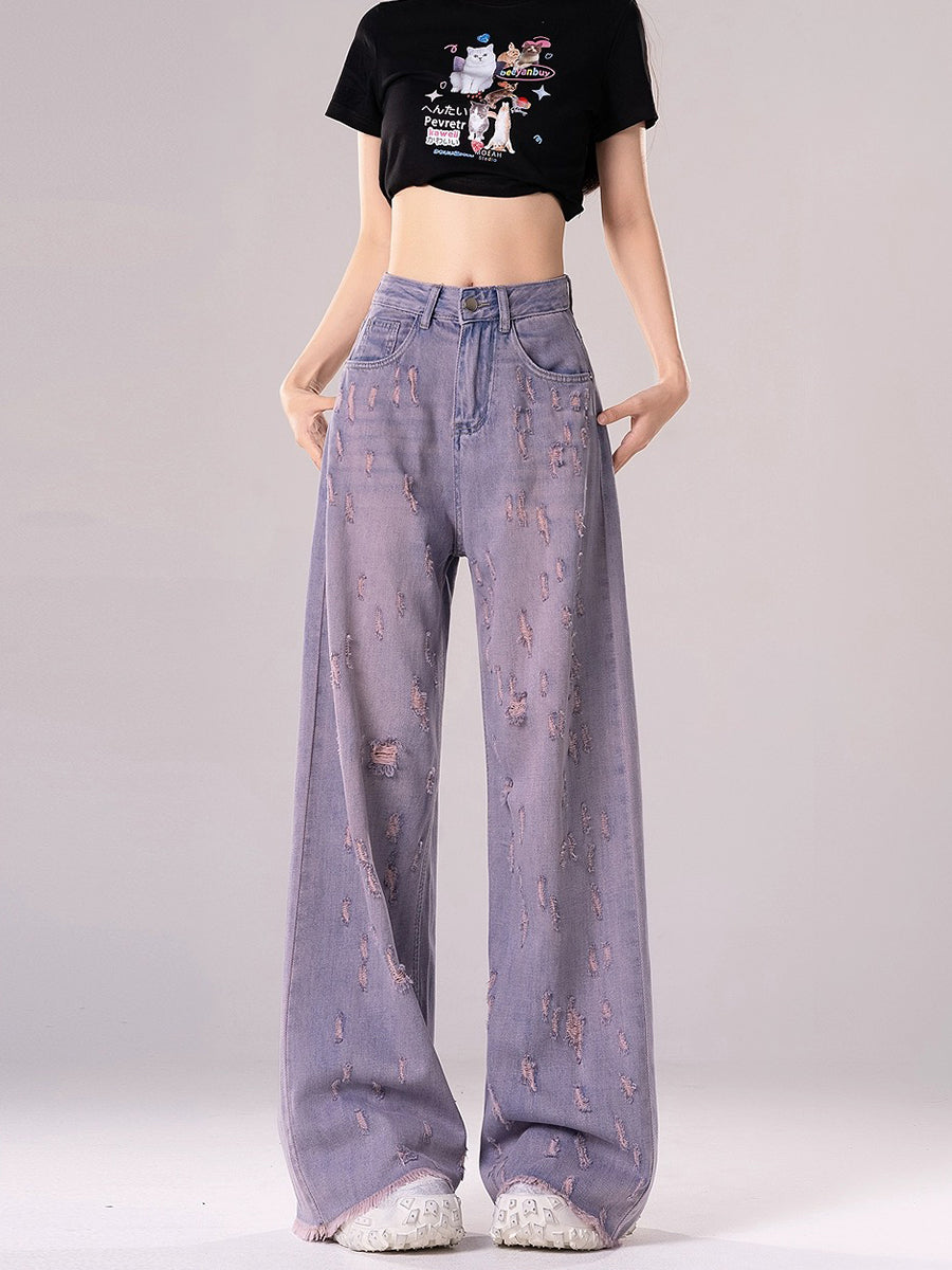 High Waist Purple Ripped Loose Denim Jeans