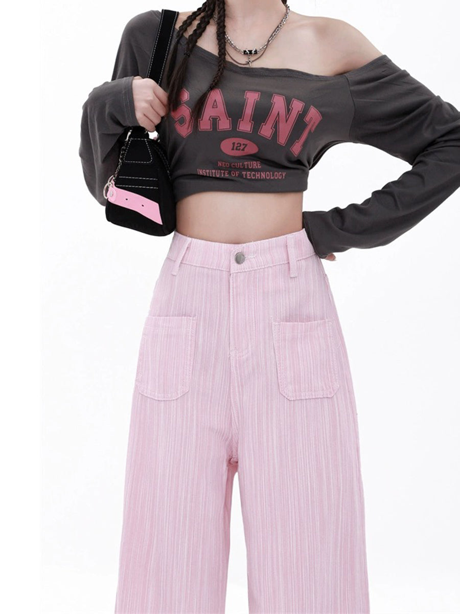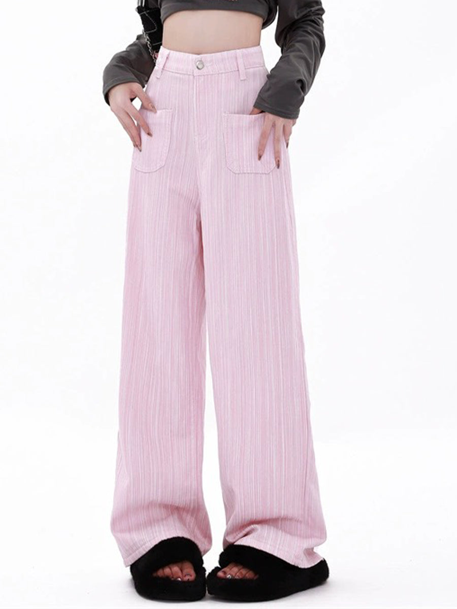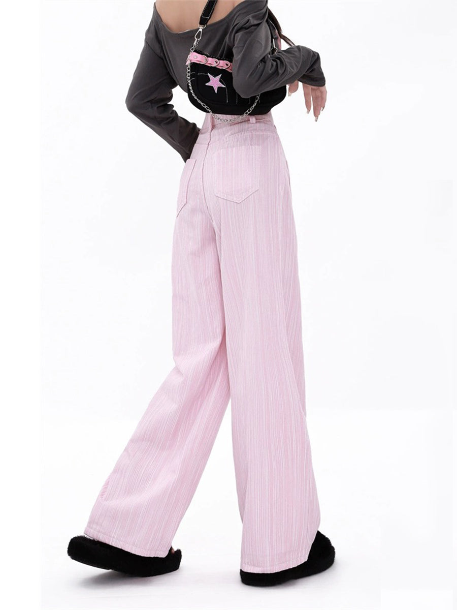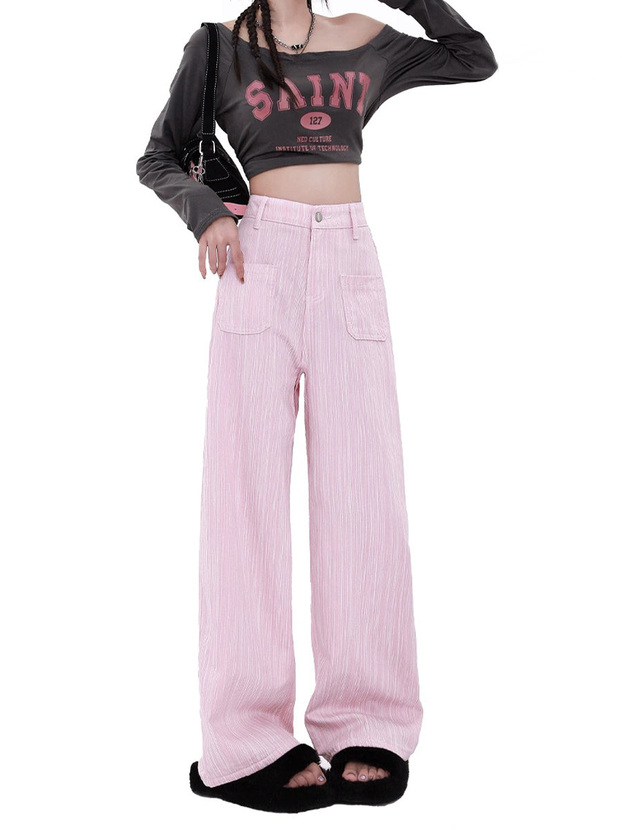 Casual Loose Fit Pink Straight Leg Pants
