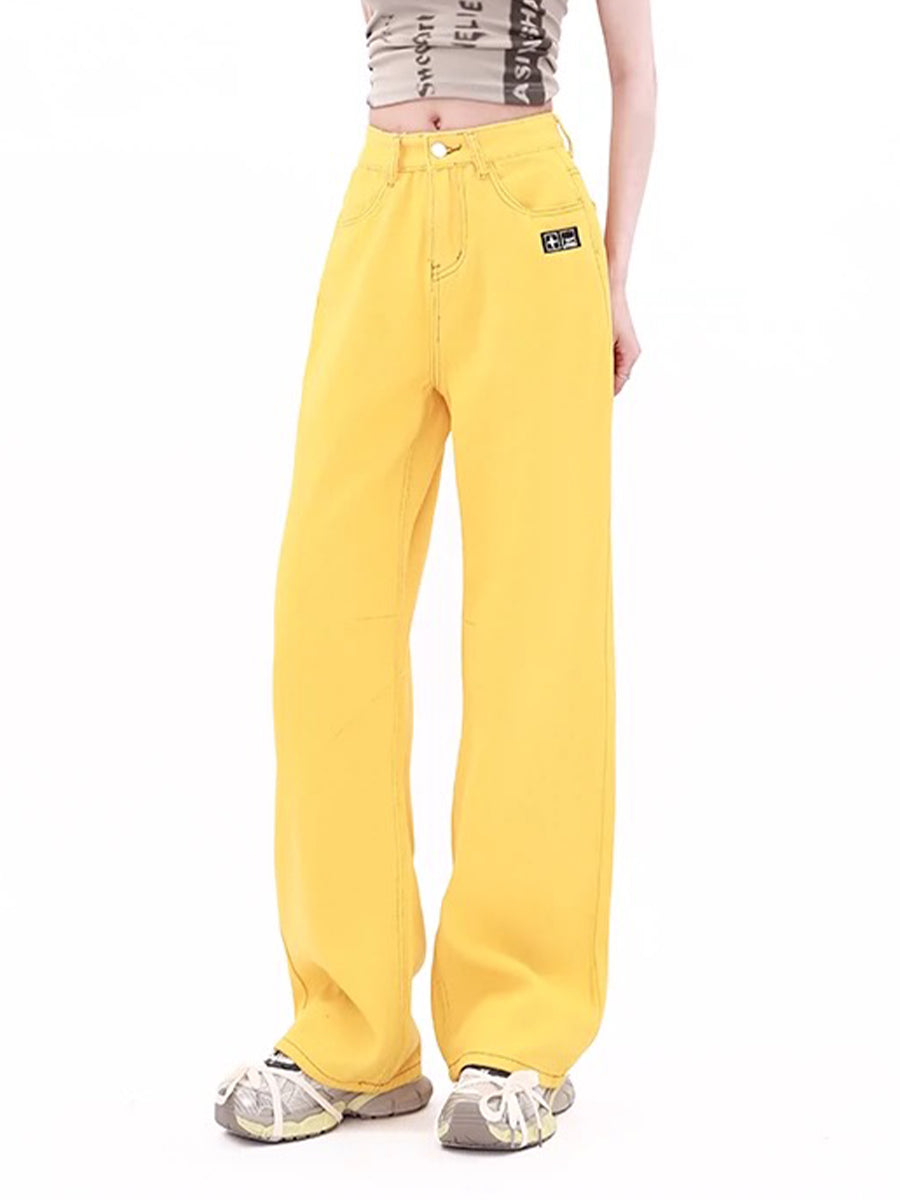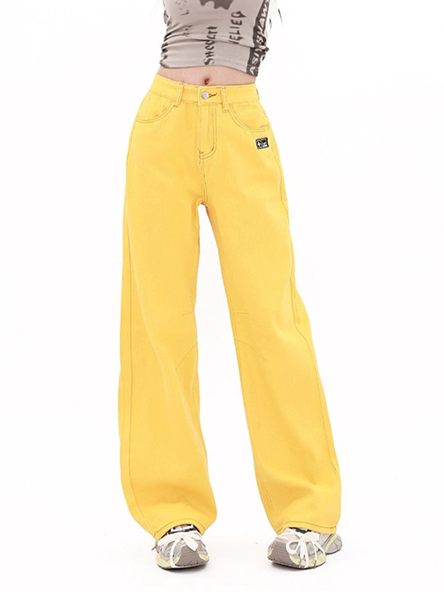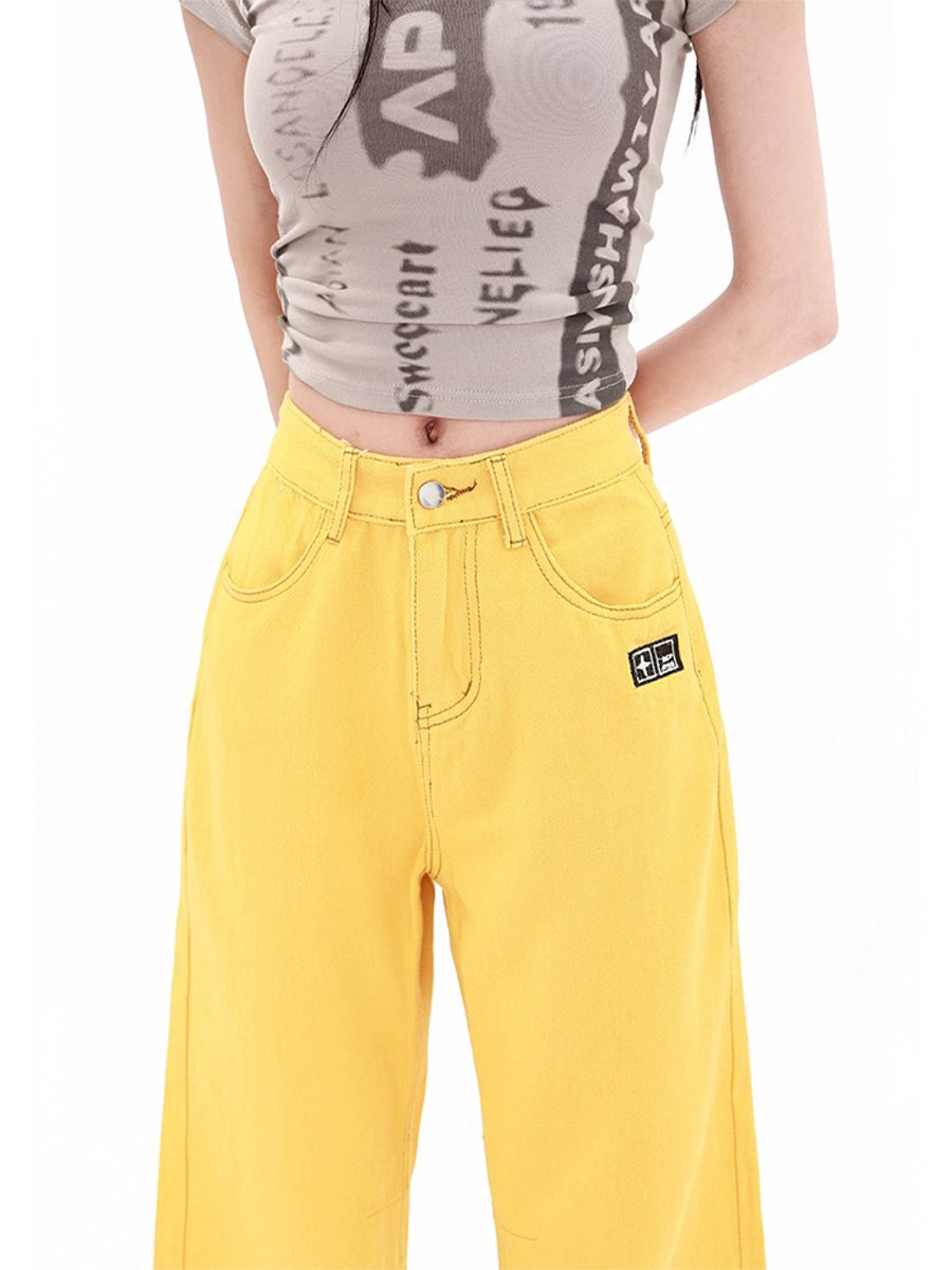 Vintage Yellow Straight Leg High Waist Jeans