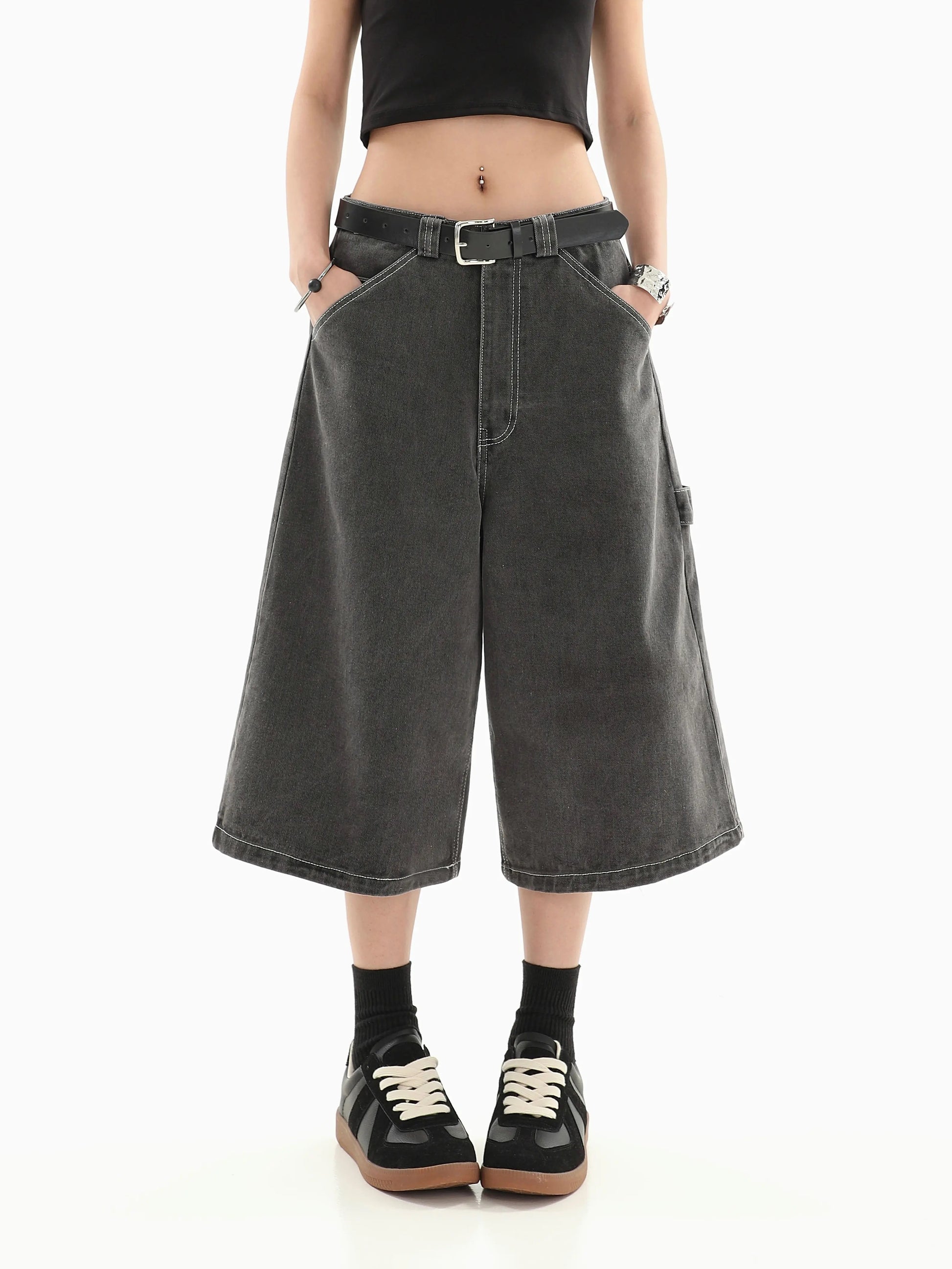 Solid Color Low Rise Loose Fit Short Jeans