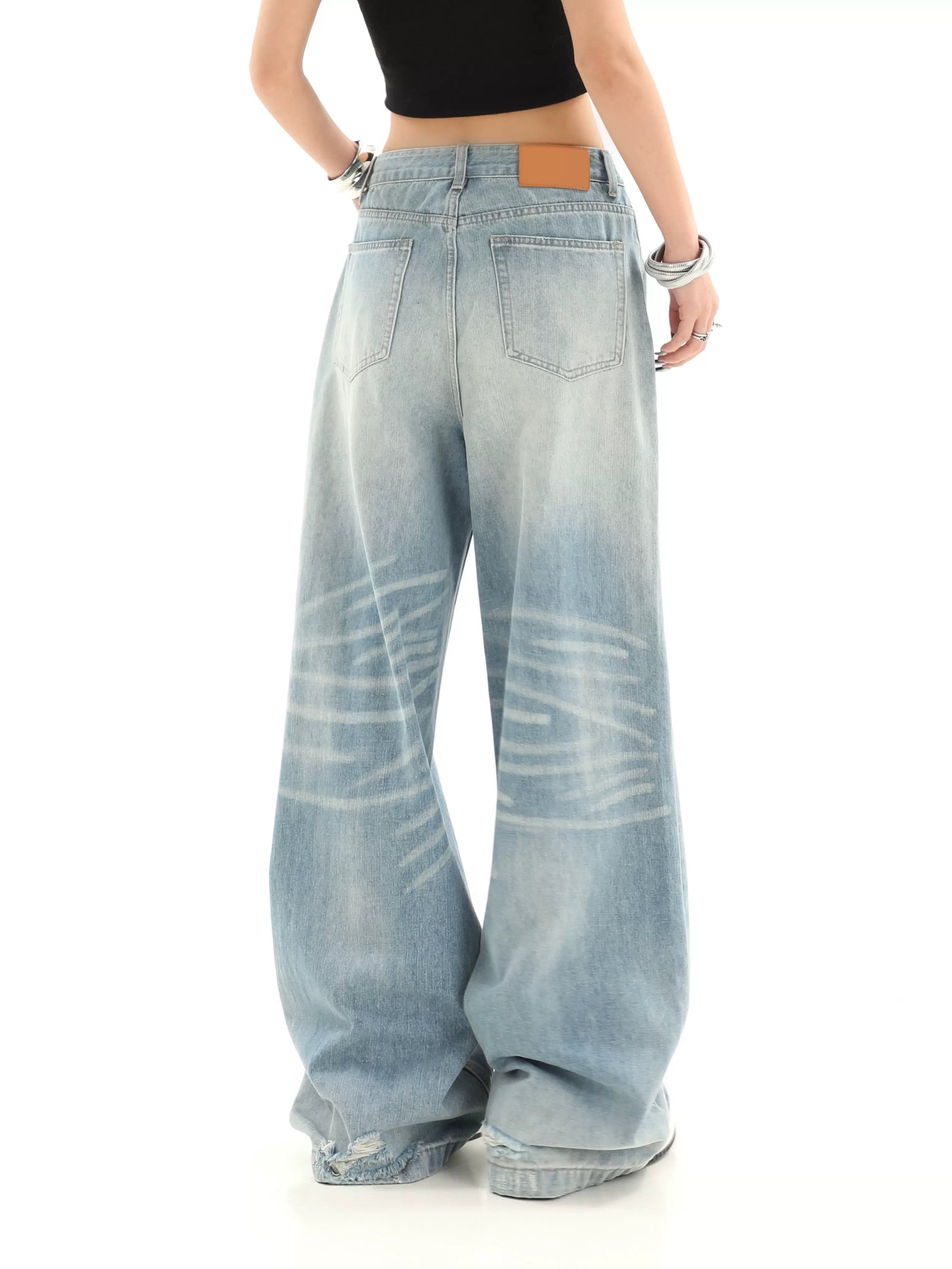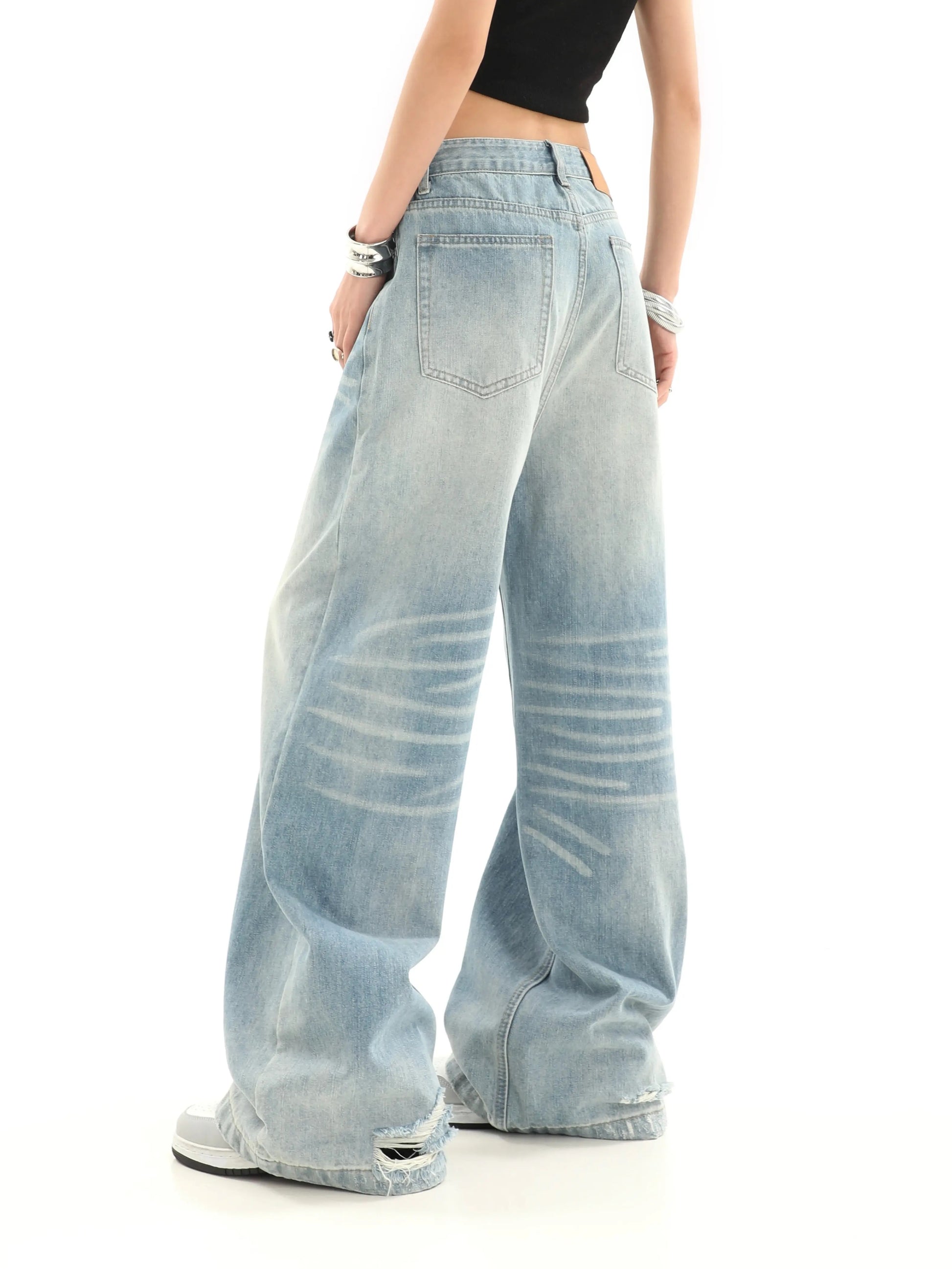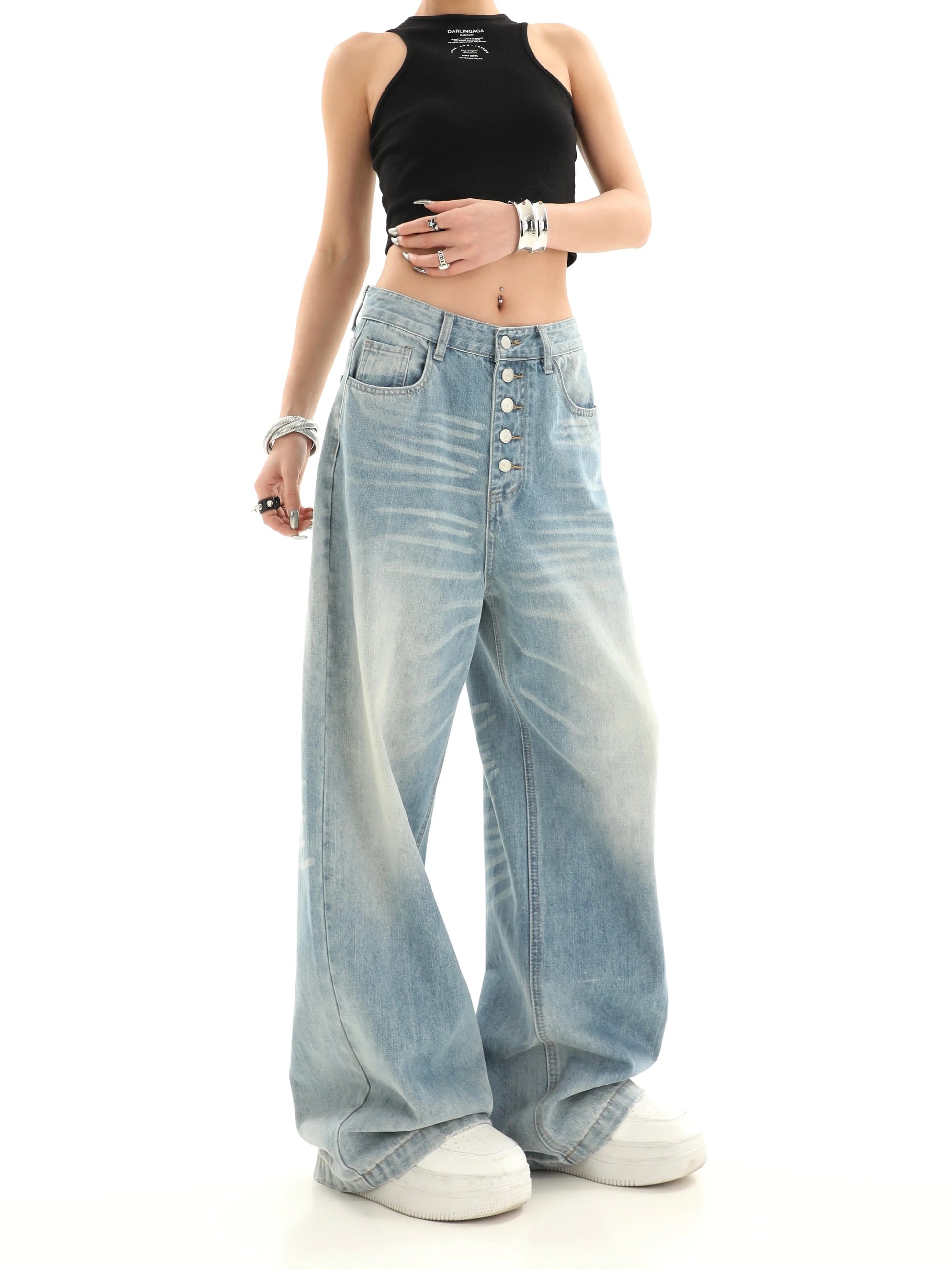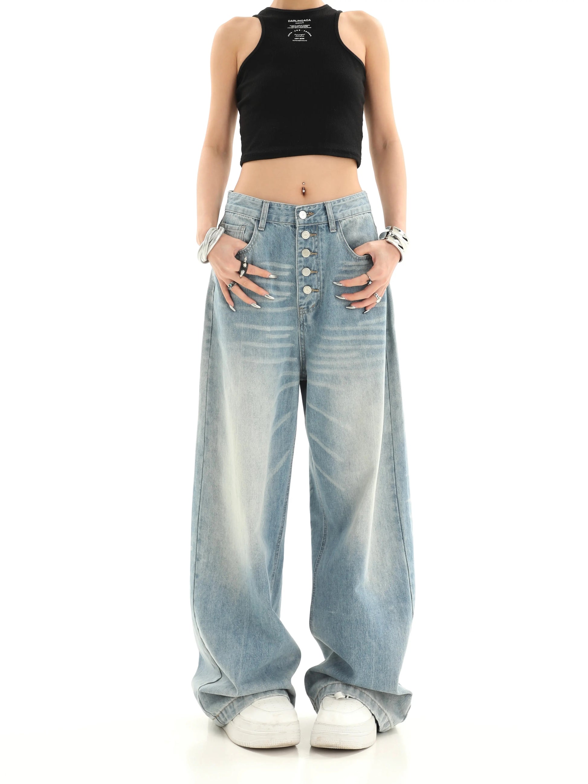 Multi-Row Button High Waist Loose Light Color Denim Jeans