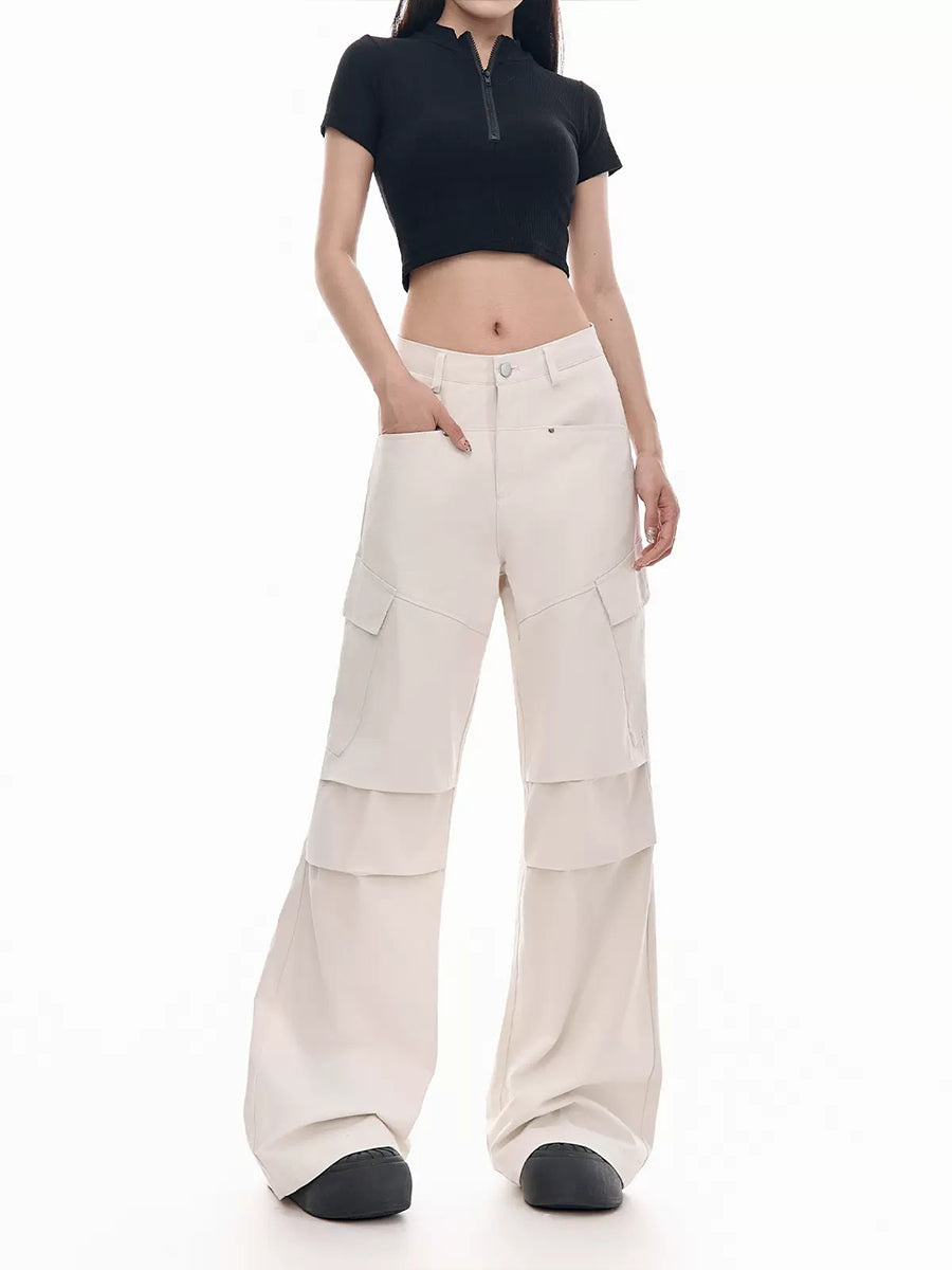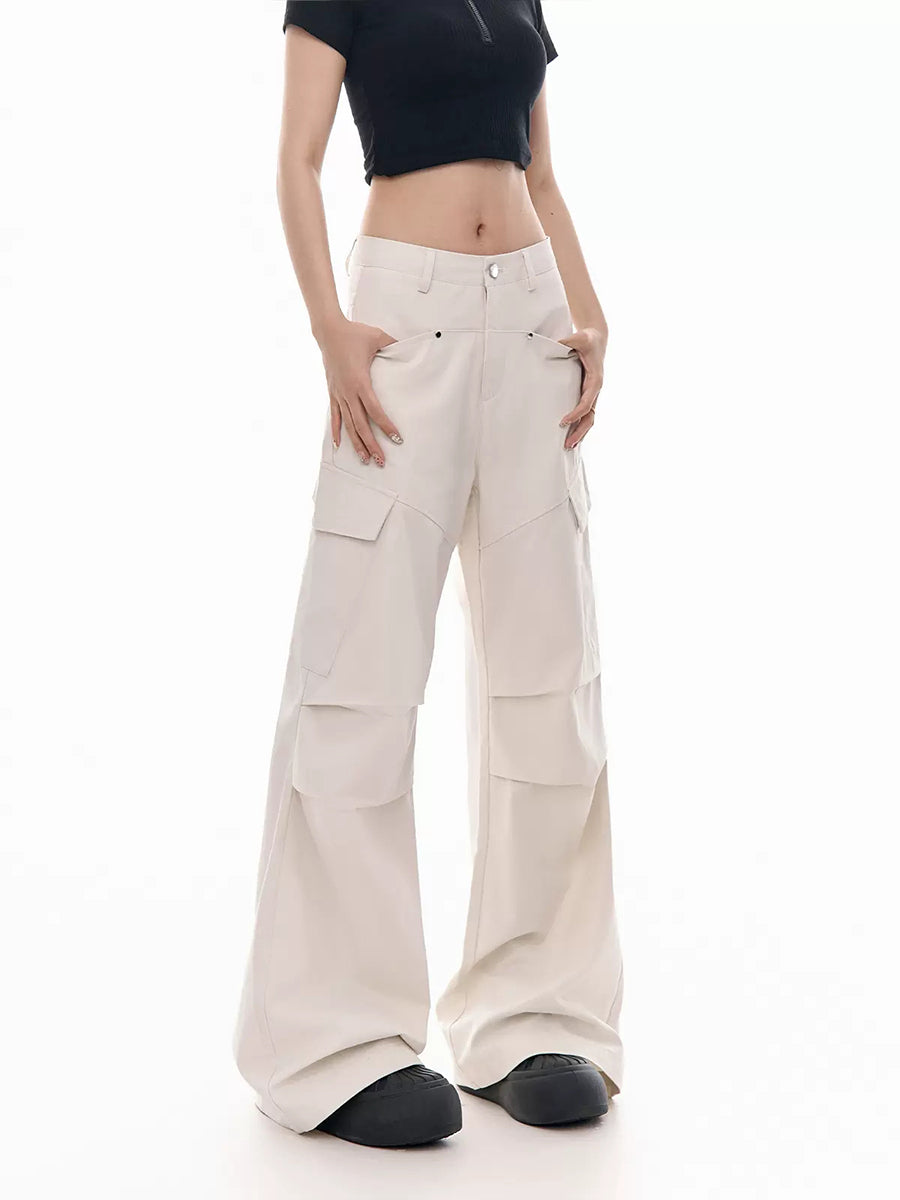 Solid Color Loose Casual Wide Leg Cargo Pants