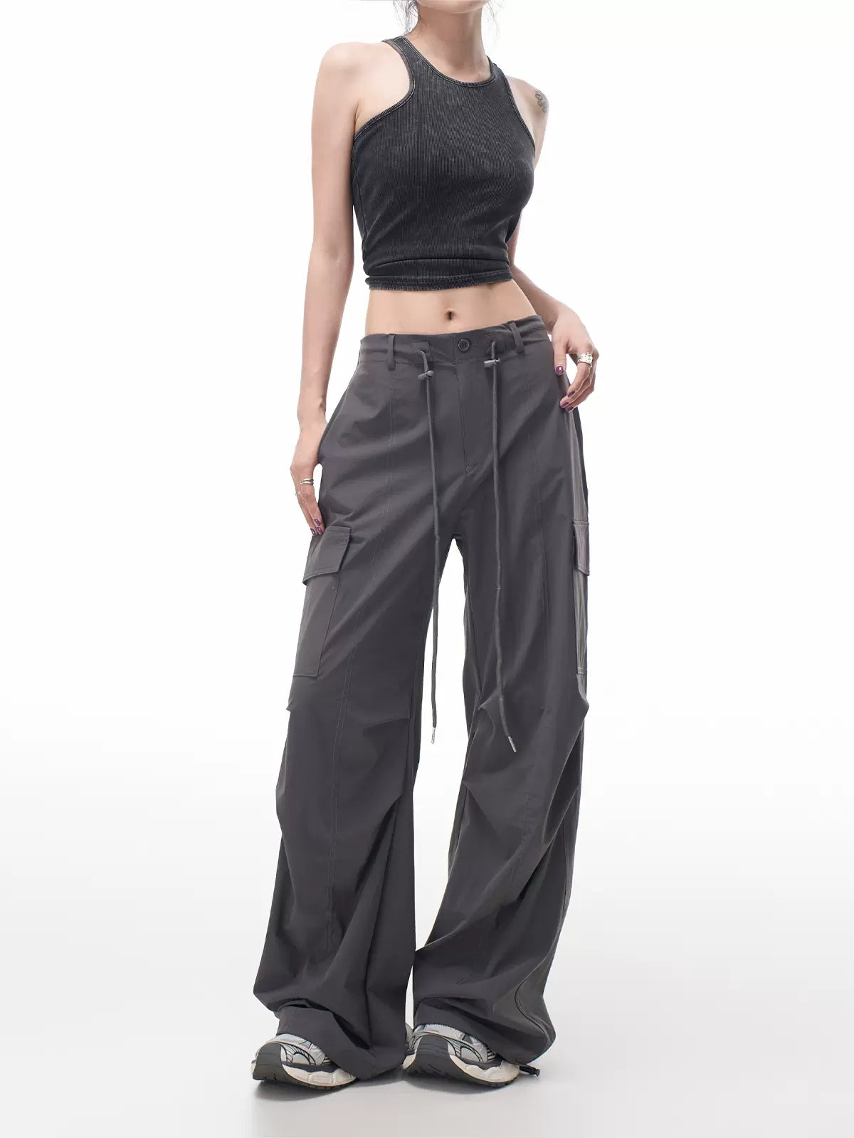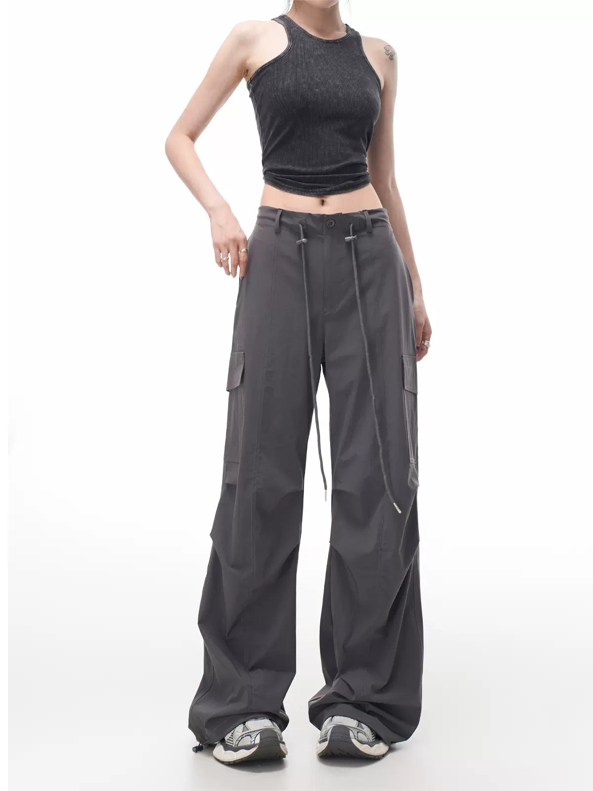 Casual Loose High Waist Cargo Drawstring Pants