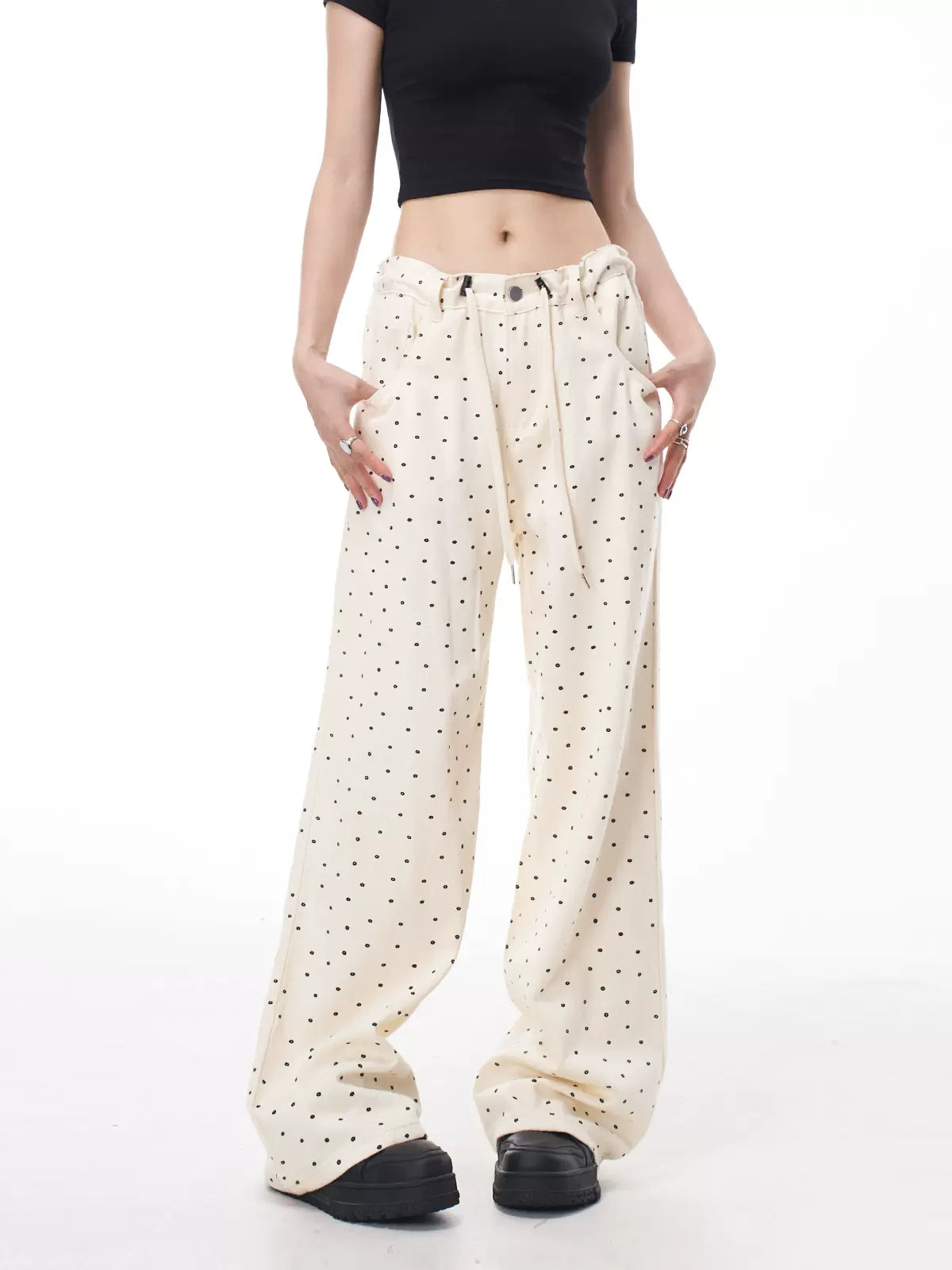 Black Floral Polka Dot Drawstring Loose Fit Jeans