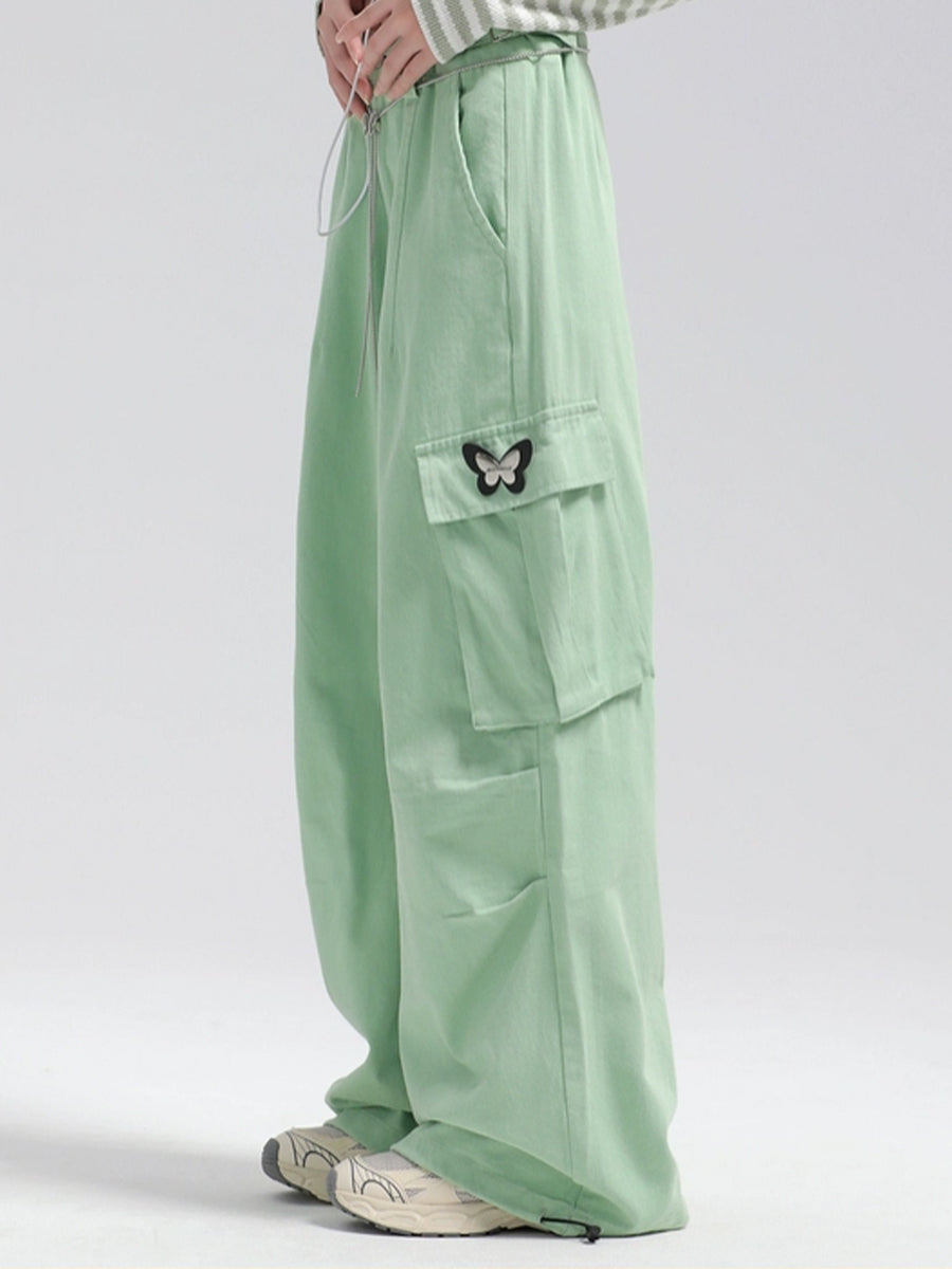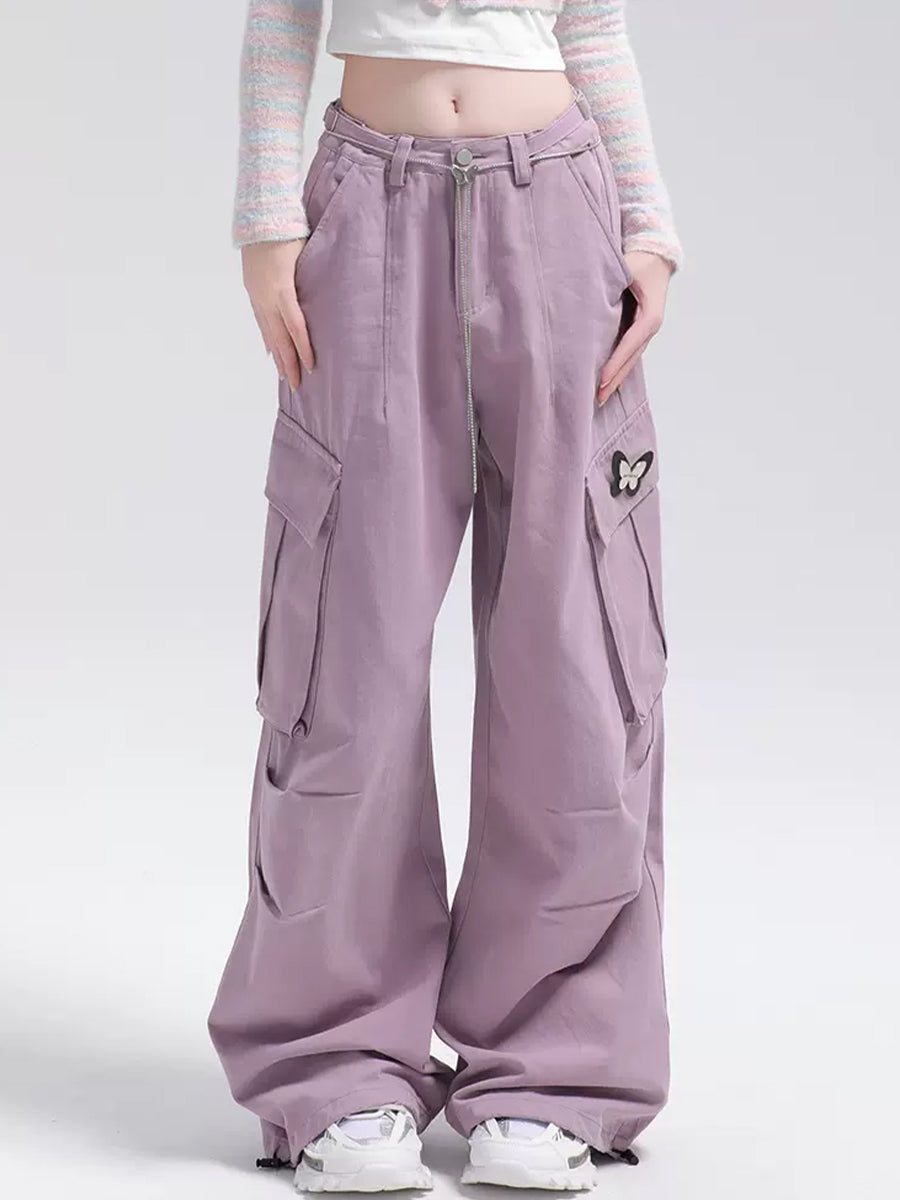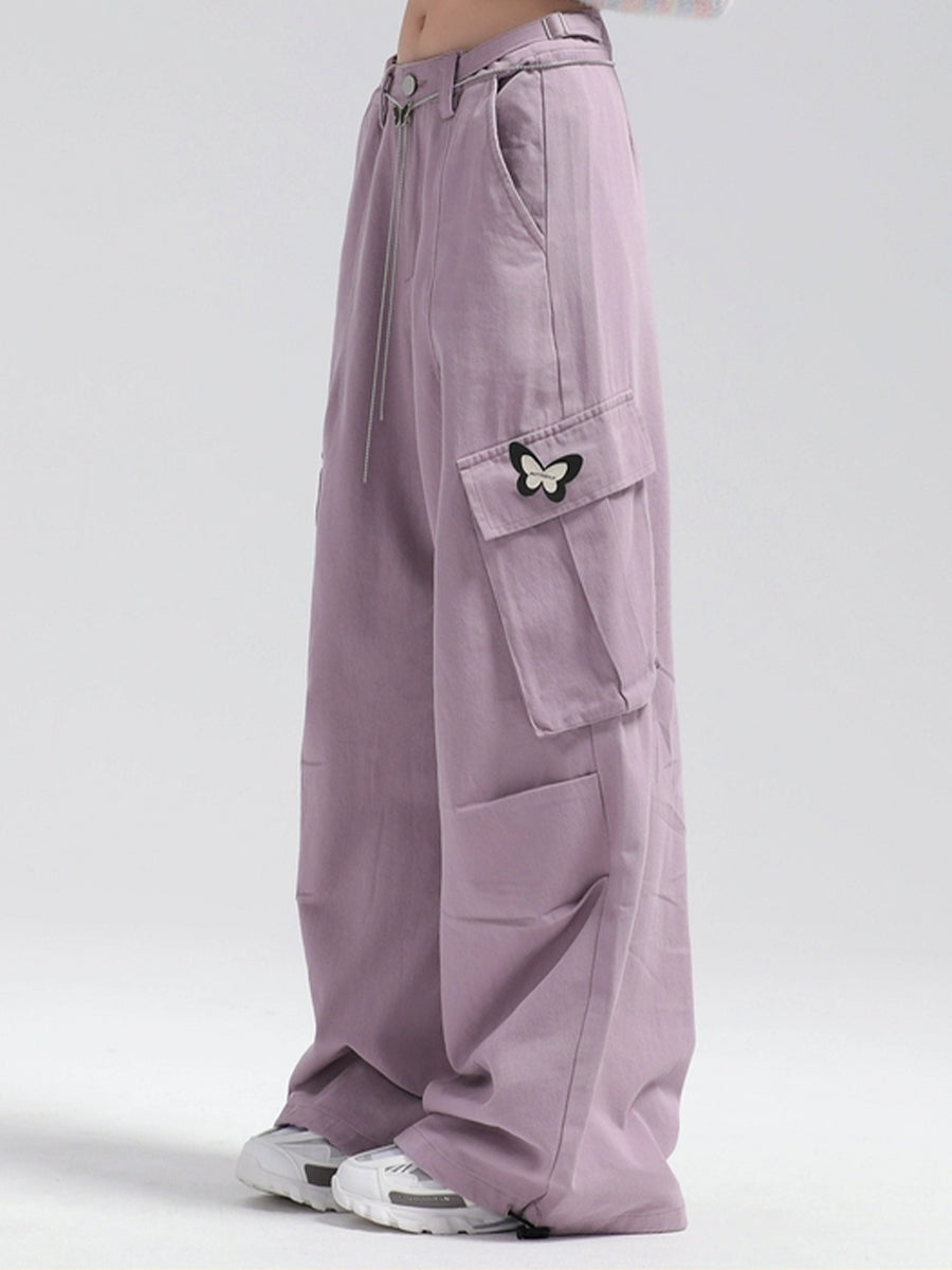 Solid Color Cargo Butterfly Decoration Loose Casual Pants with Butterfly Chain Belt
