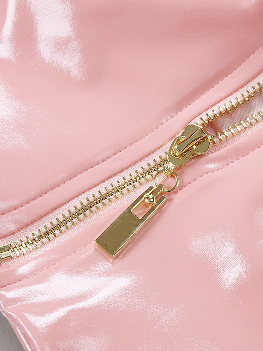 Pink Leather Cami Top + Tight Skirt Set