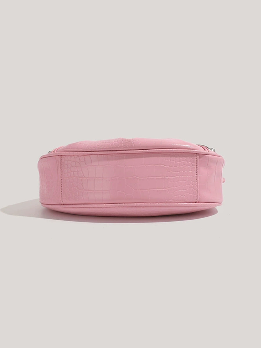 Pink Leather Croissant Bag with Mirror and Pouch