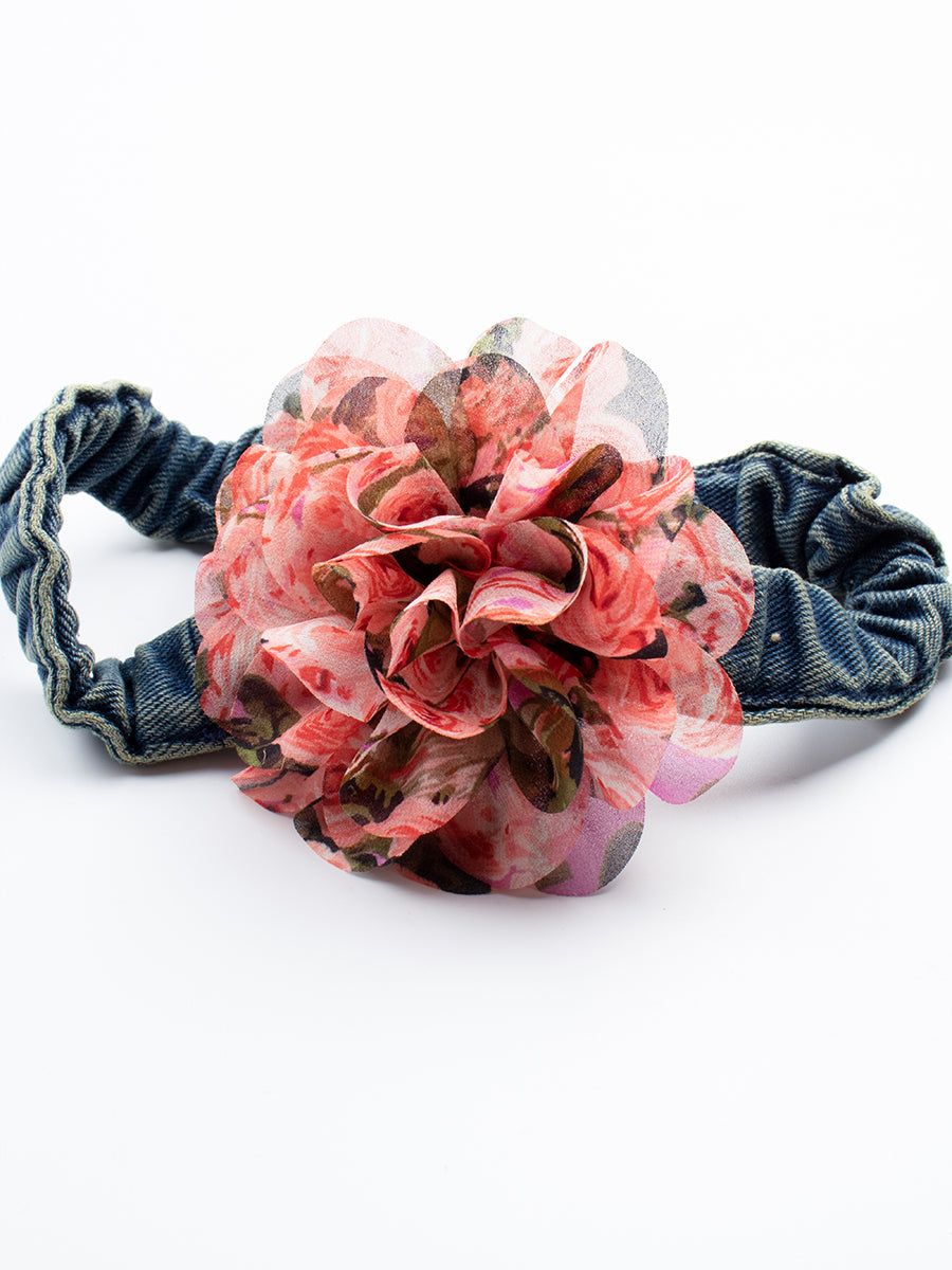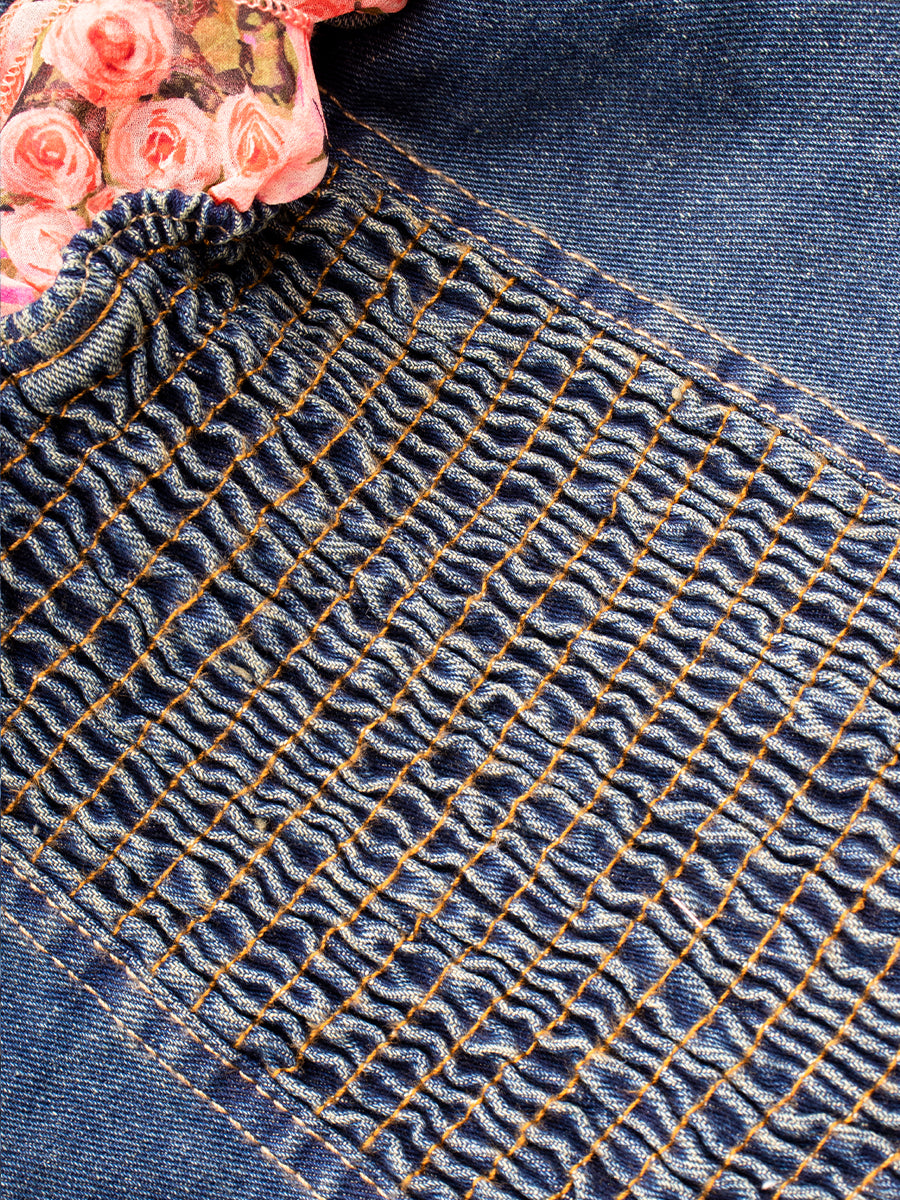 Rose Floral Patchwork Denim Irregular Dress with Floral Choker Necklace
