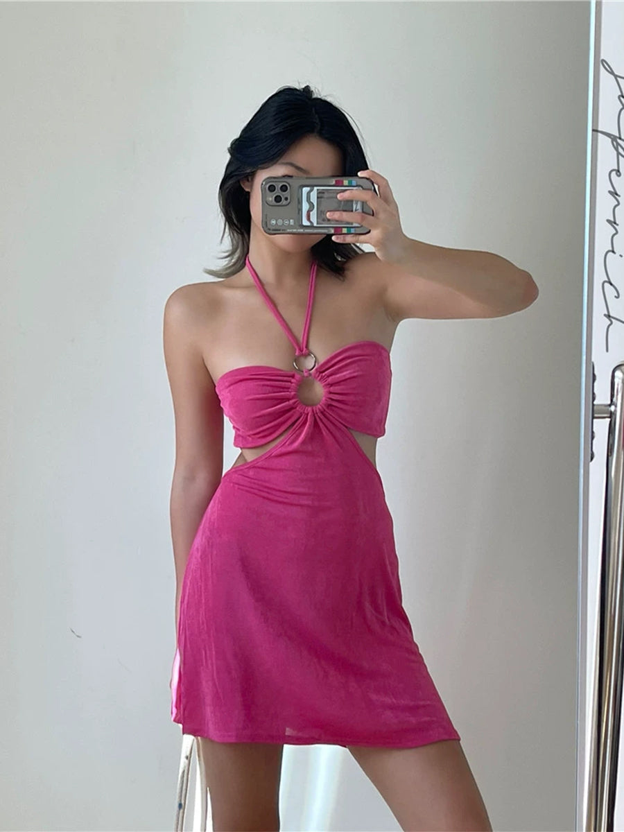 Rose Velvet Halter Dress