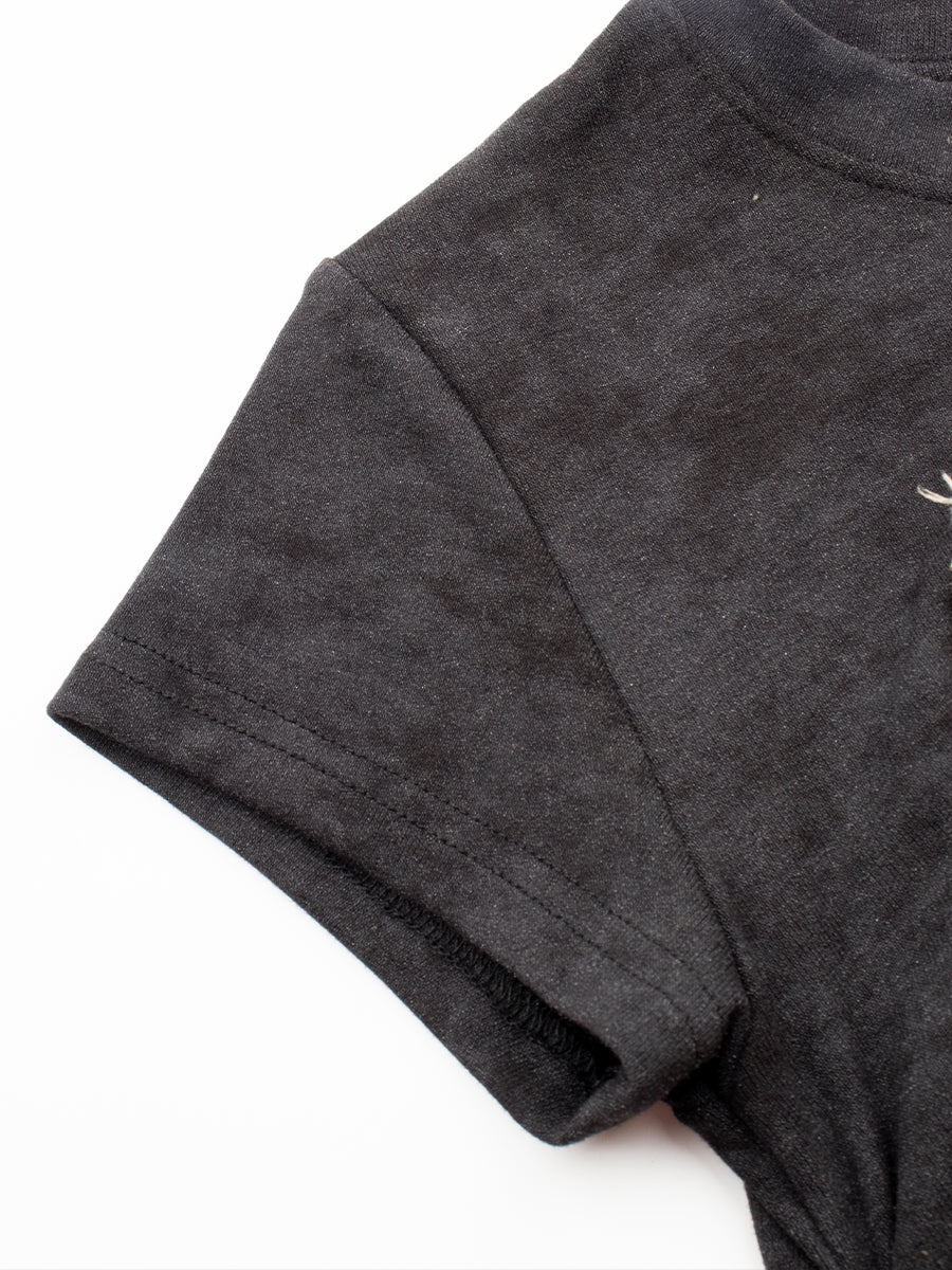 Round Neck Denim Butterfly Embroidery Tie-Dye Short Sleeve Crop Top