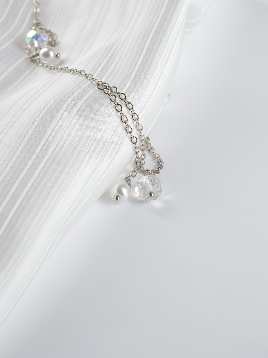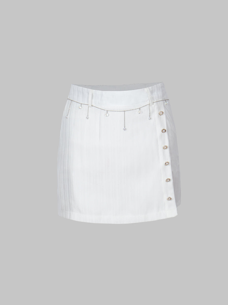 Satin Pearlized Top & Skirt Set with Belt Chain
