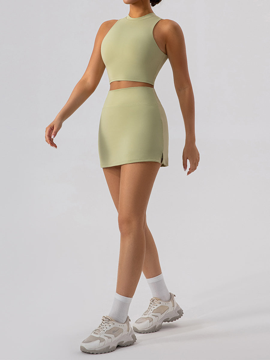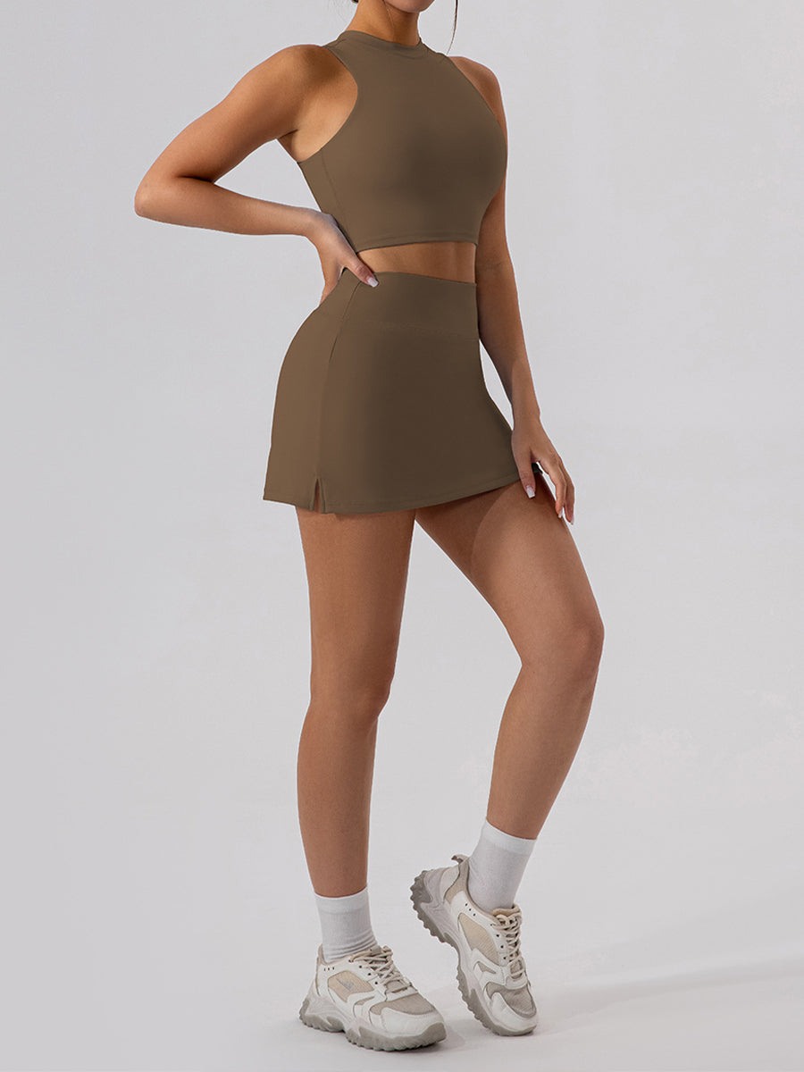 Solid Color Running Skorts for Causal Tummy Control Workout Skirt High Waisted Yoga Capris Shorts