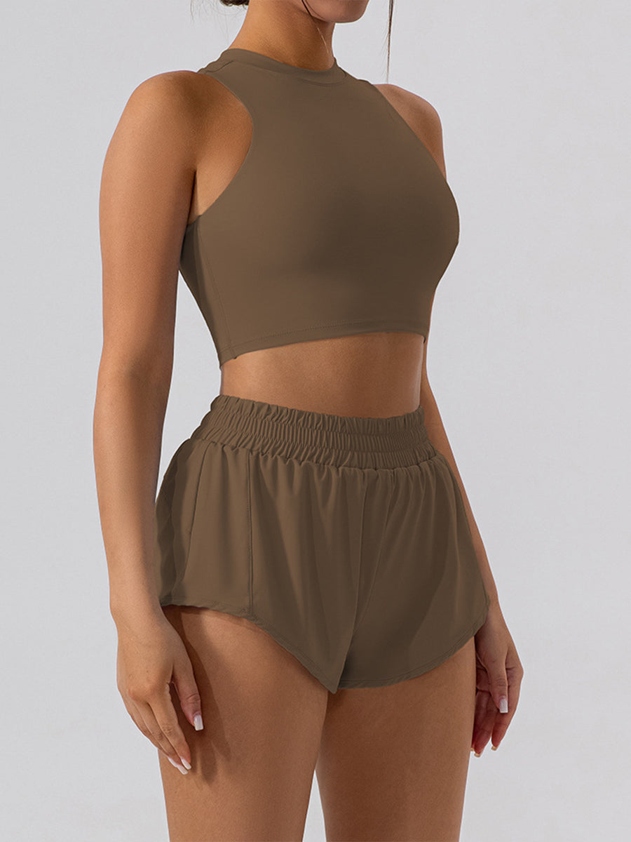 Solid Color Running Skorts for Causal Tummy Control Workout Skirt High Waisted Yoga Capris Shorts