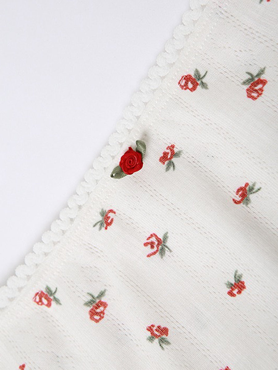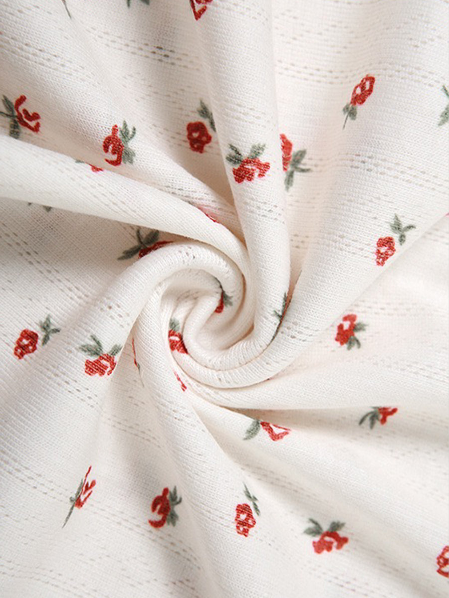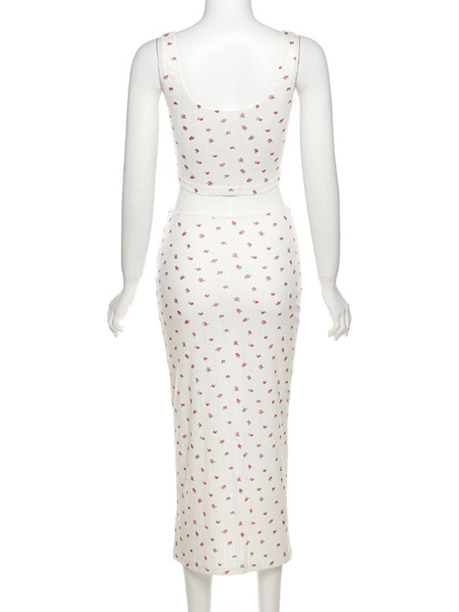 Rose Floral Print Knit Stretchy Cami Top + Long Skirt Two Piece Set