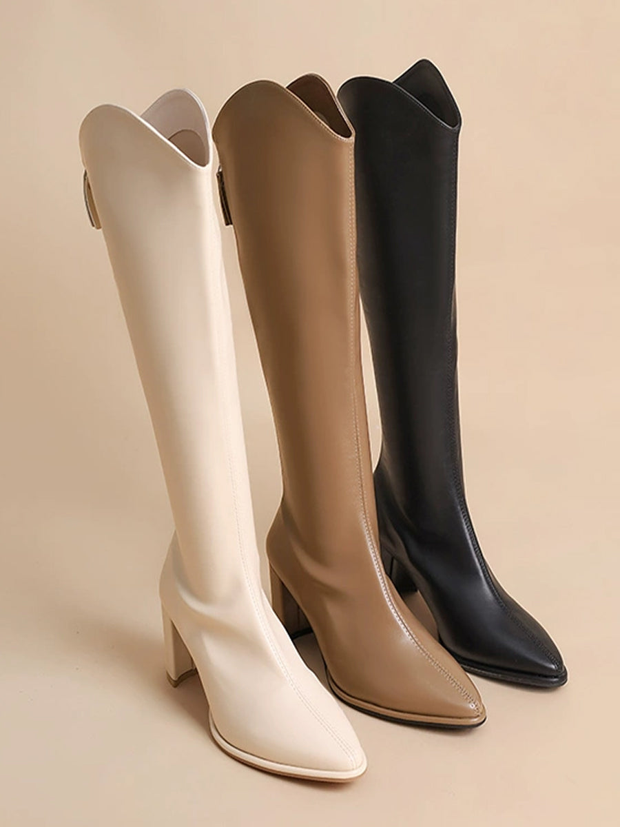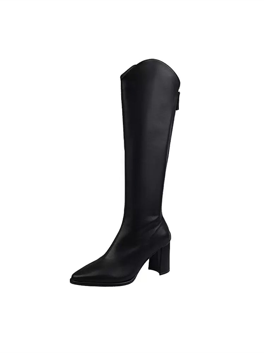 Women's Solid Color Zipper Height Increase V Solid Color Boots