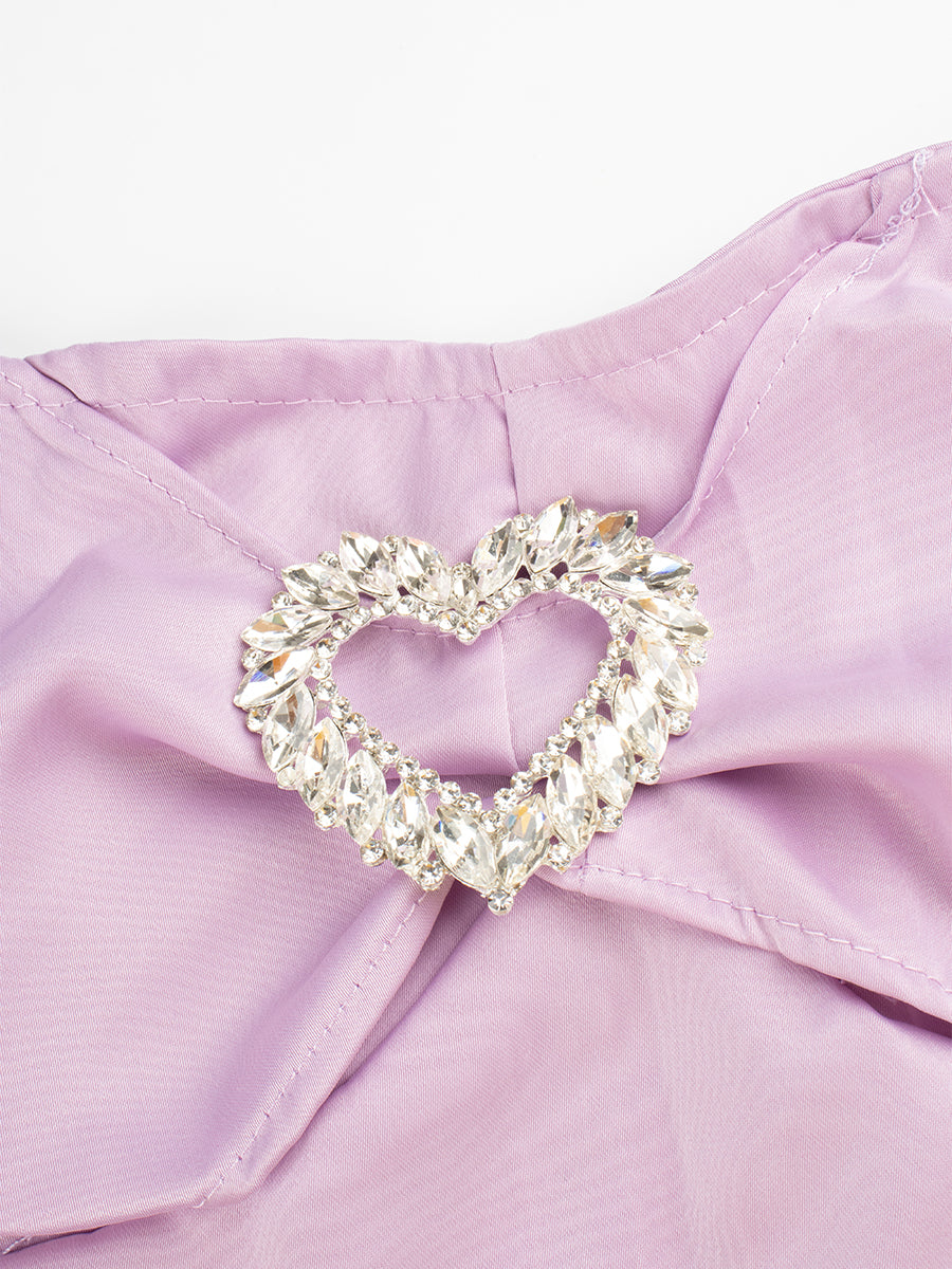 Silk Strapless Crop Top with Floral Choker + Pleated Skirt with Belt Two Piece Set