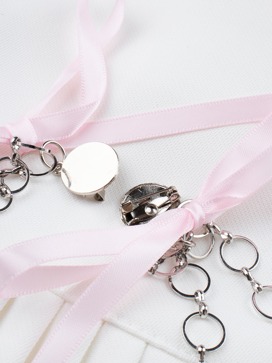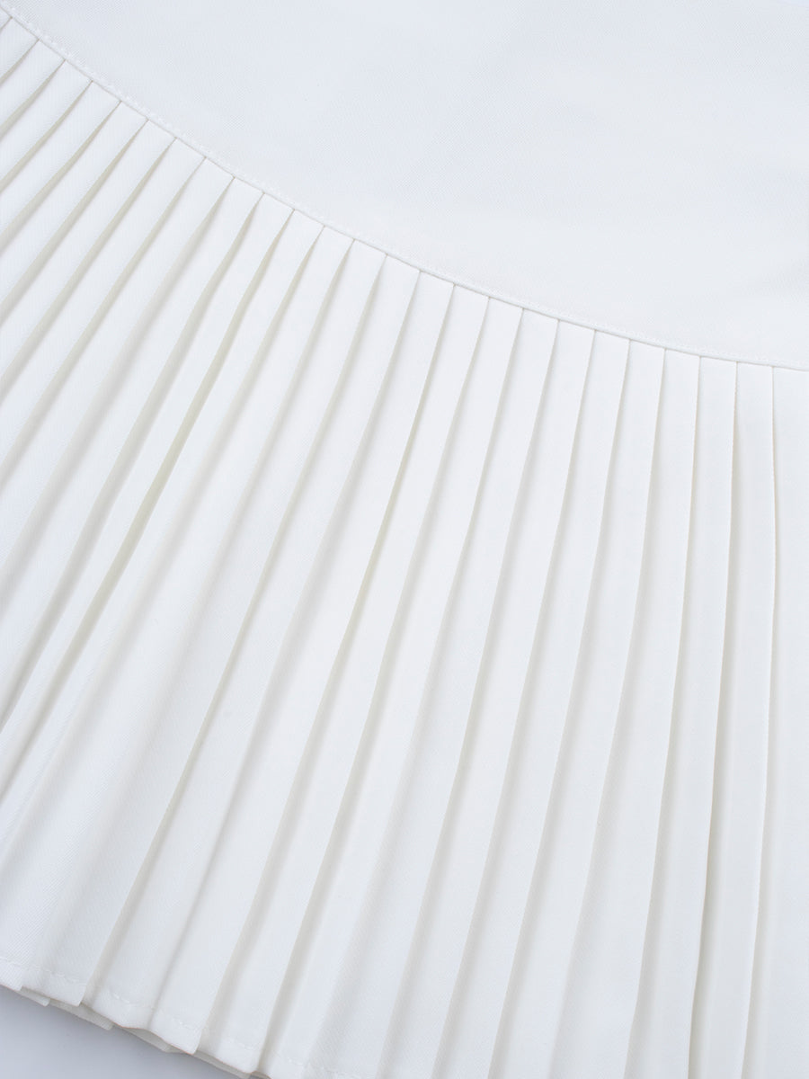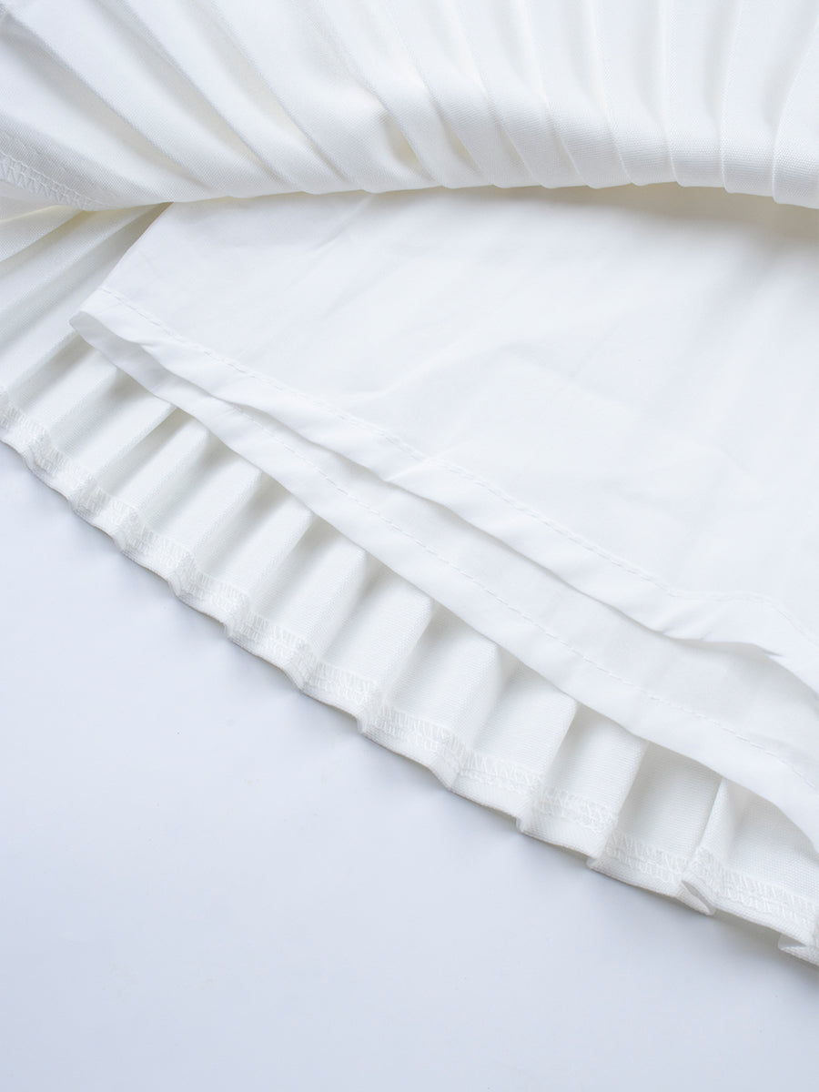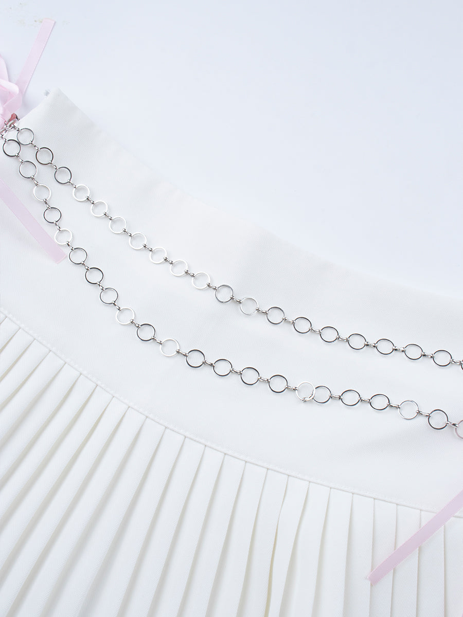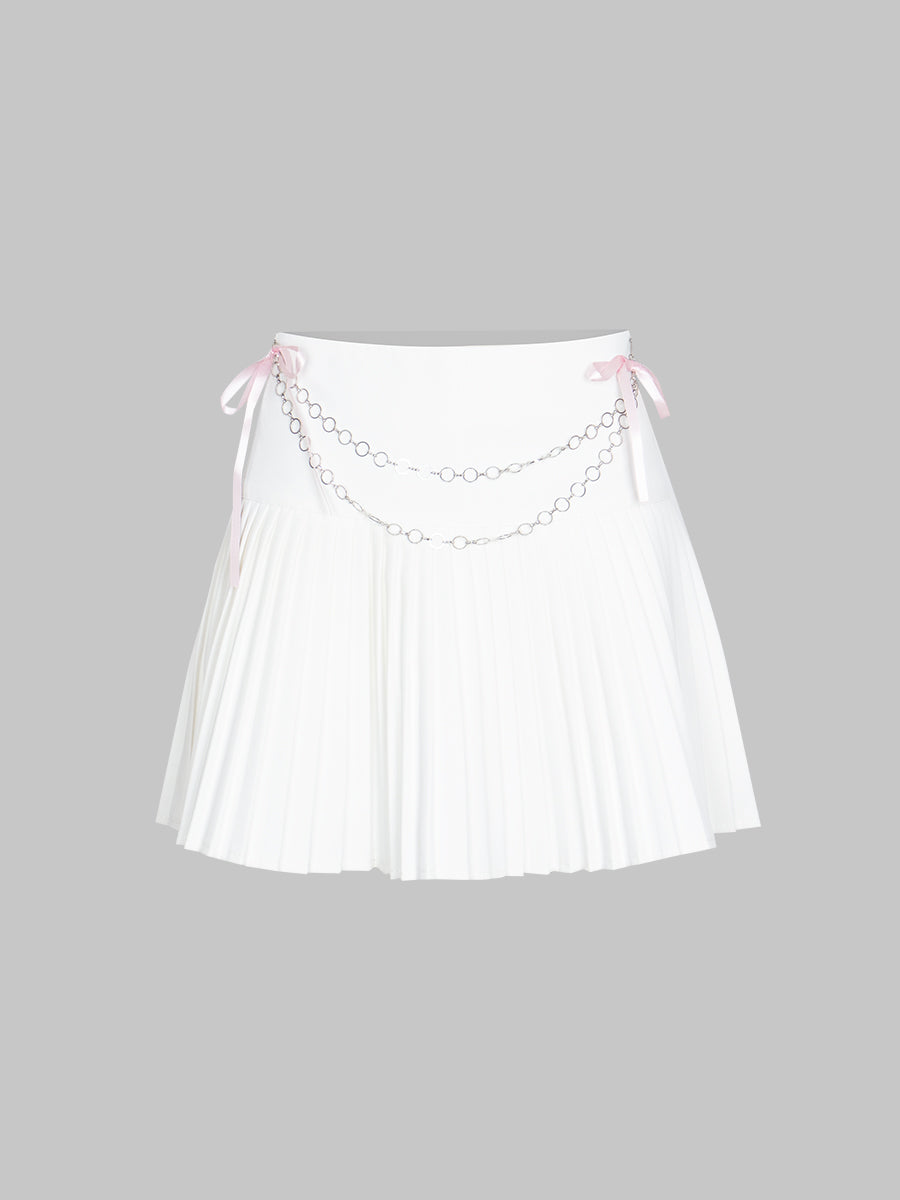 Solid Color Pleated Skirt with Bowknot Waist Chain