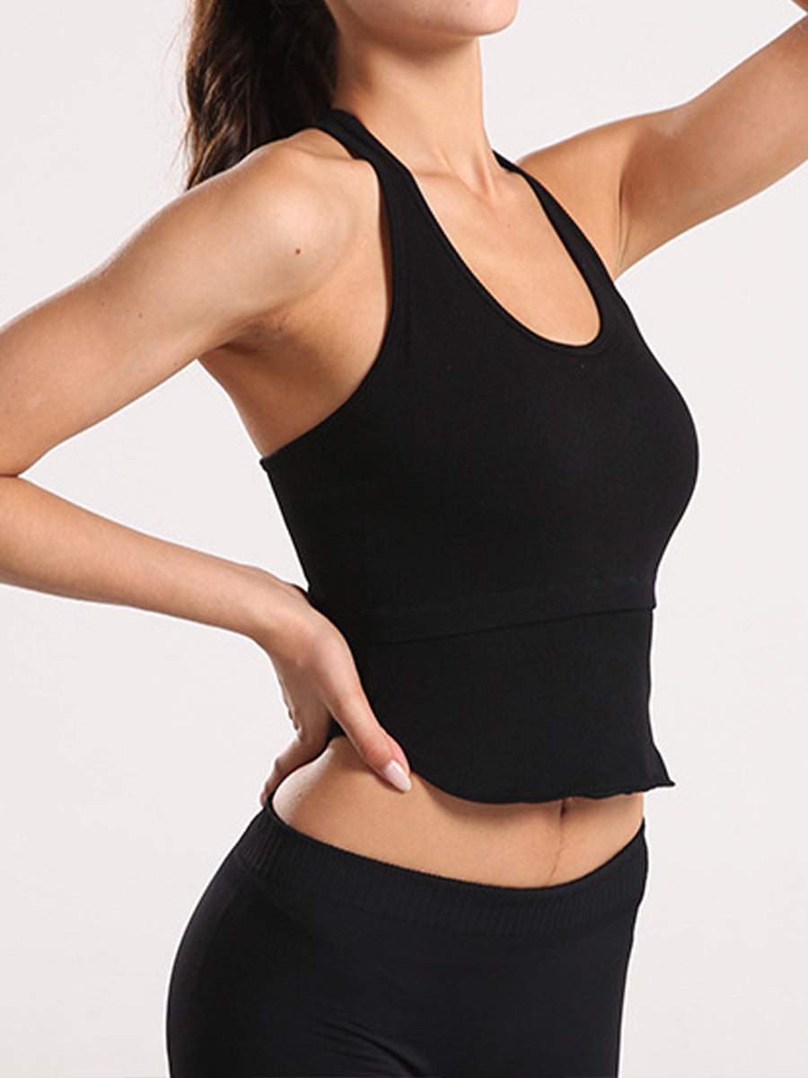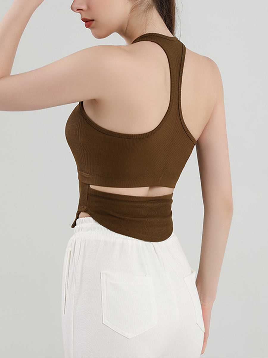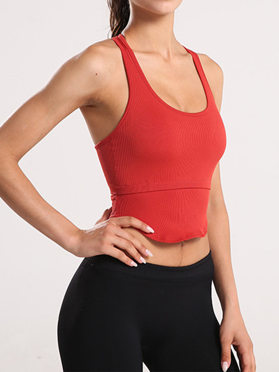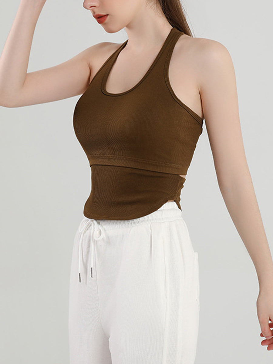 Solid Slim Fit Sports Cami Top Yoga Tank Gym Top with Chest Pads