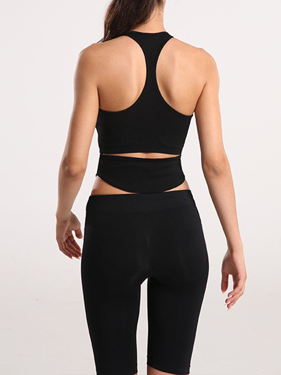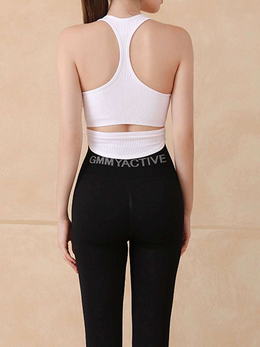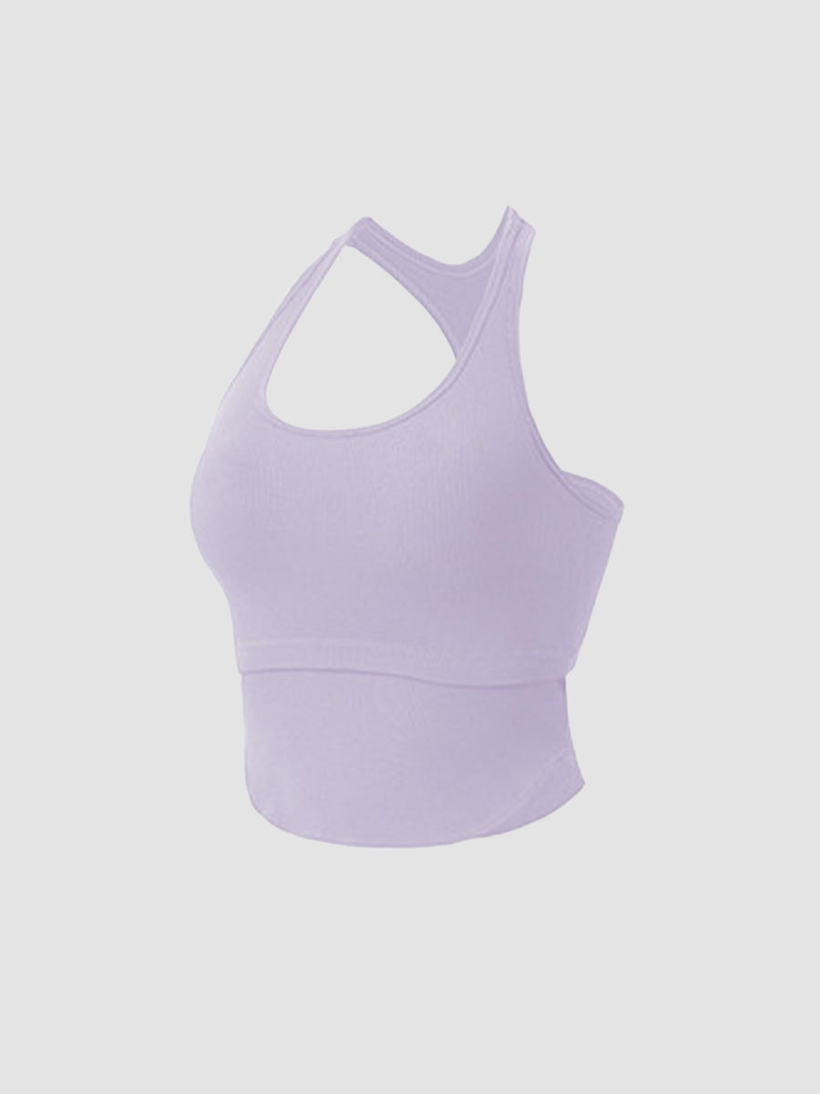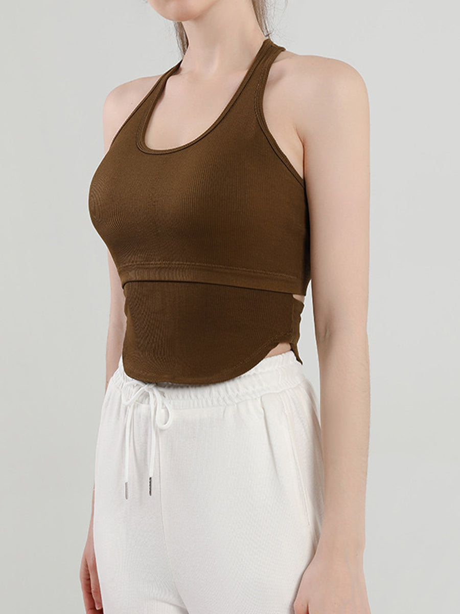 Solid Slim Fit Sports Cami Top Yoga Tank Gym Top with Chest Pads