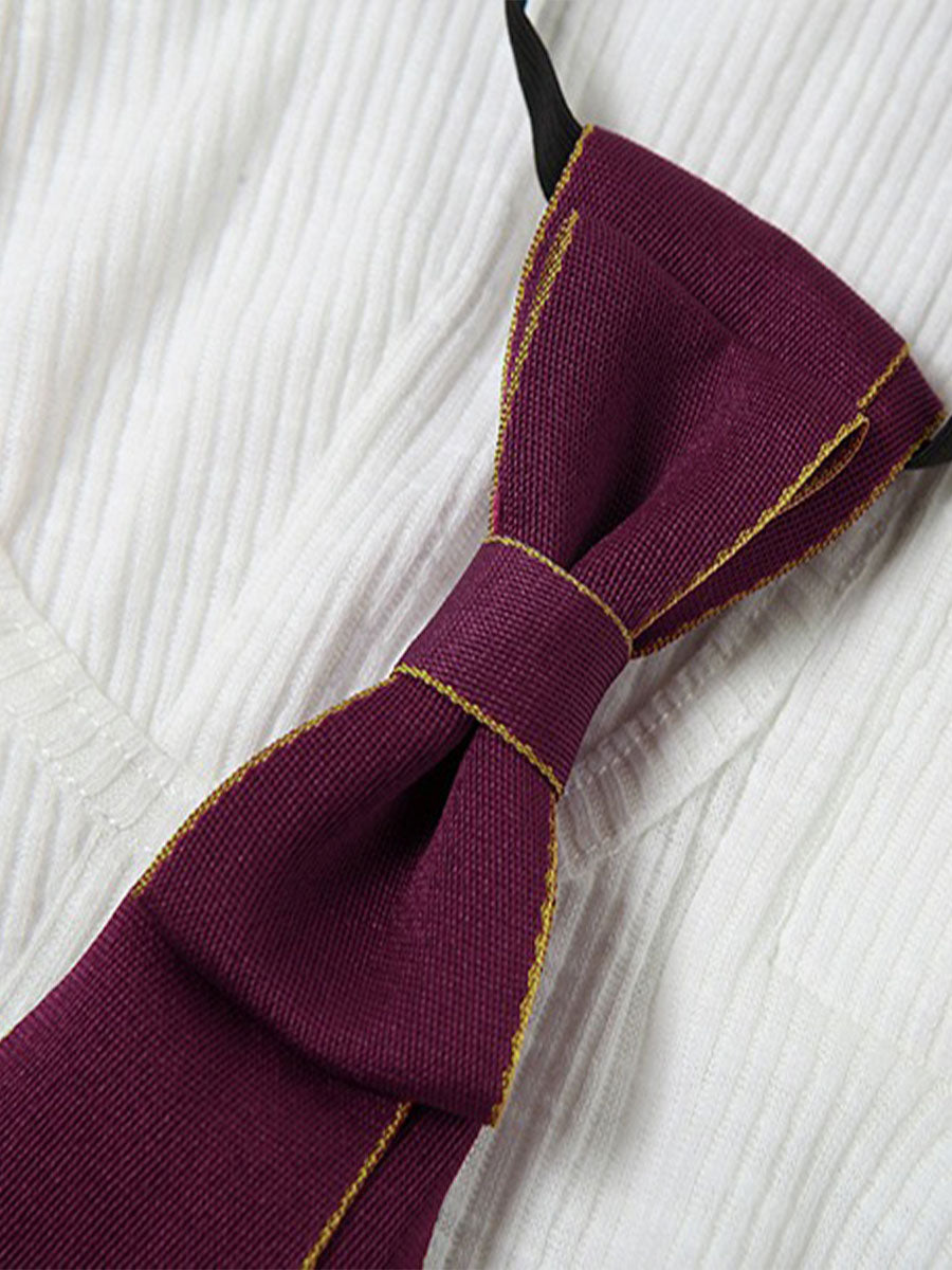 Summer Pure White Short Sleeves Top & Plaid Skirt & Tie Three Pieces Set