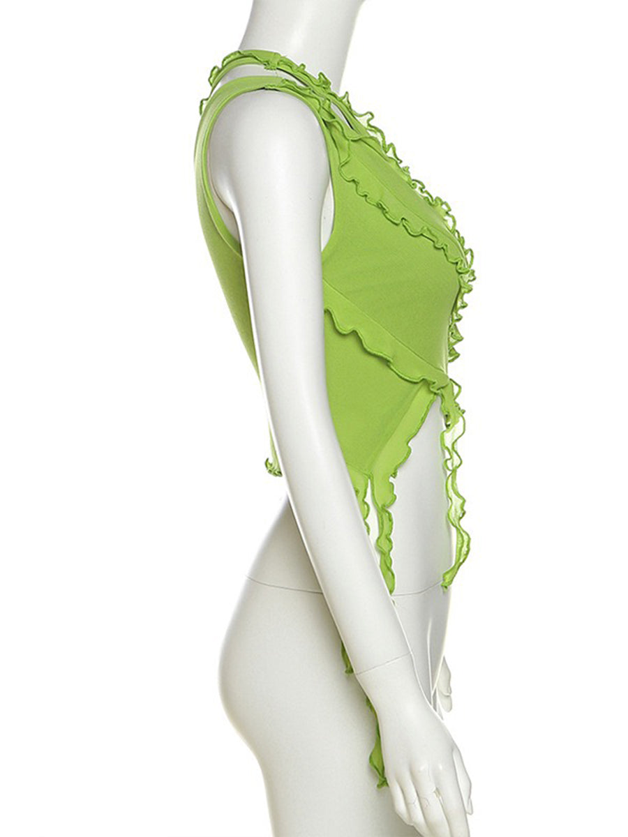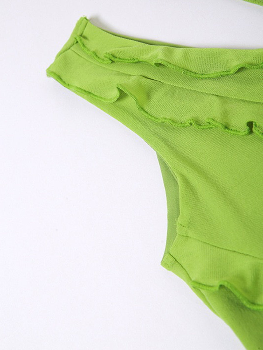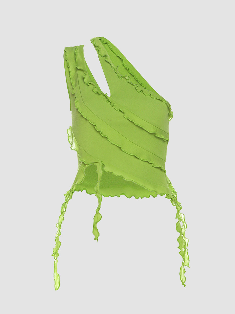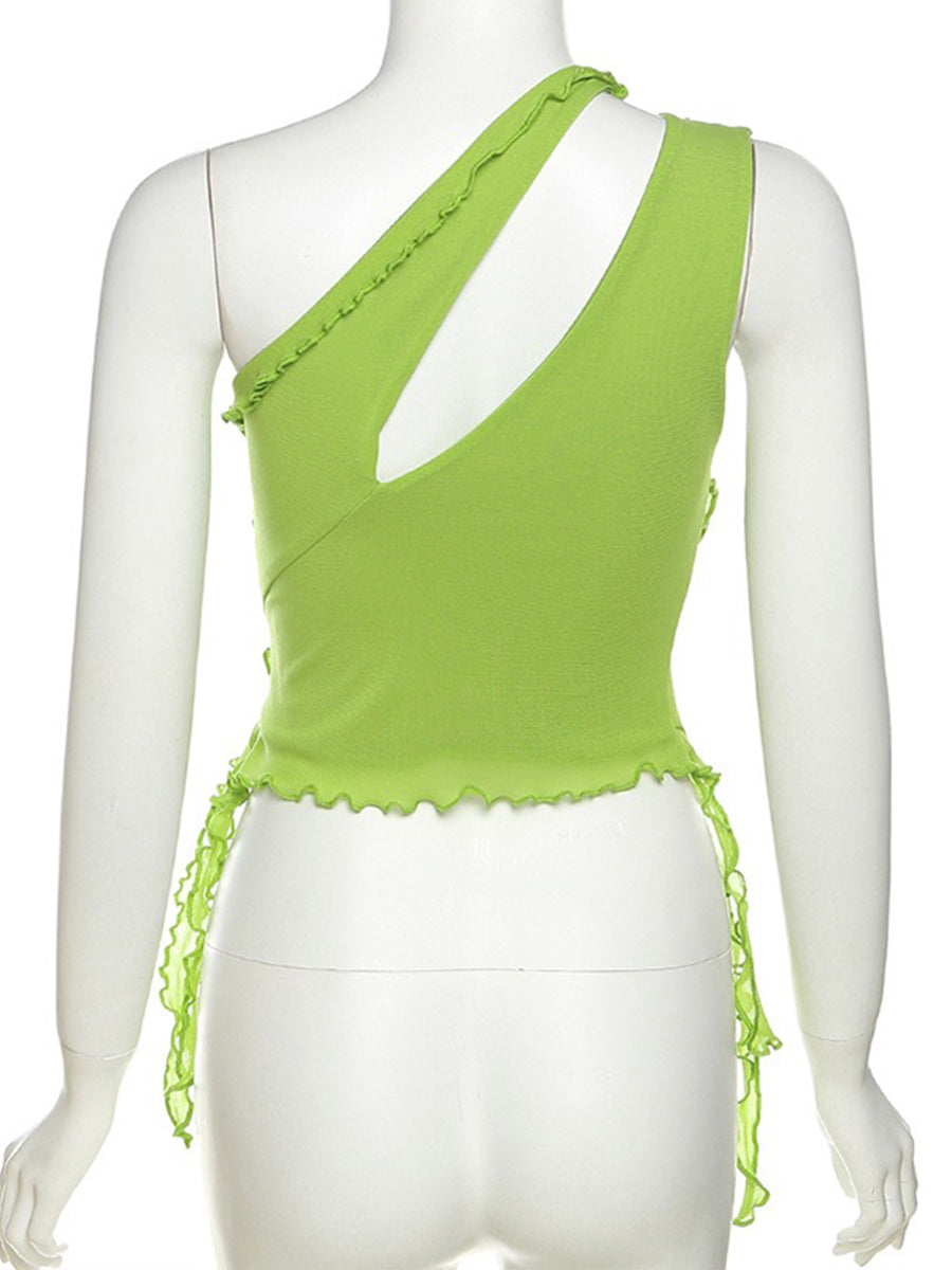 Solid Color Irregular Cutout One-Shoulder Top