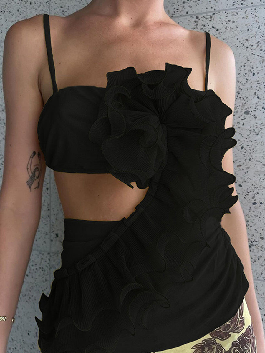 Sexy Mesh Patchwork Hollow Out Camisole Top
