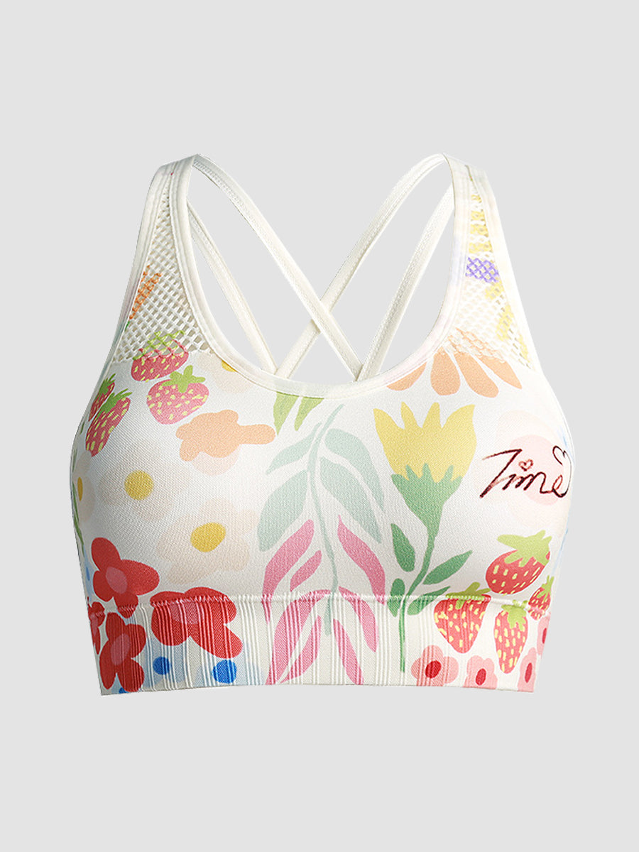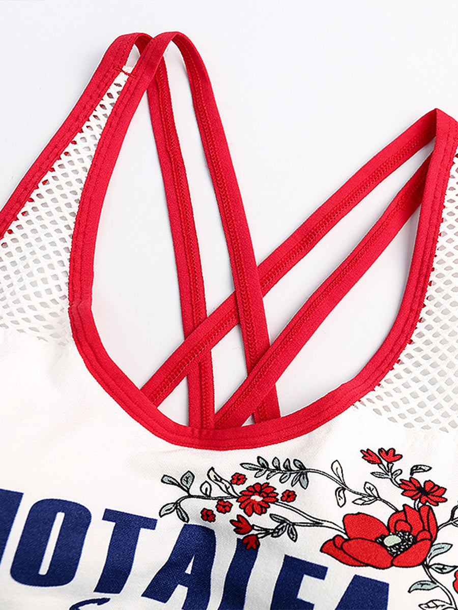 Summer Printed Cross Strap Short Sports And Casual Tank Top With Chest Pads
