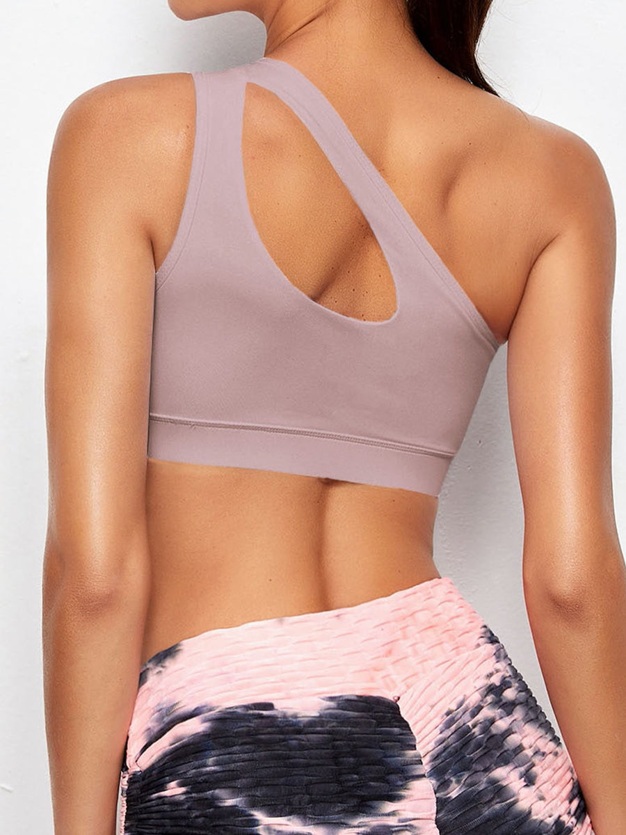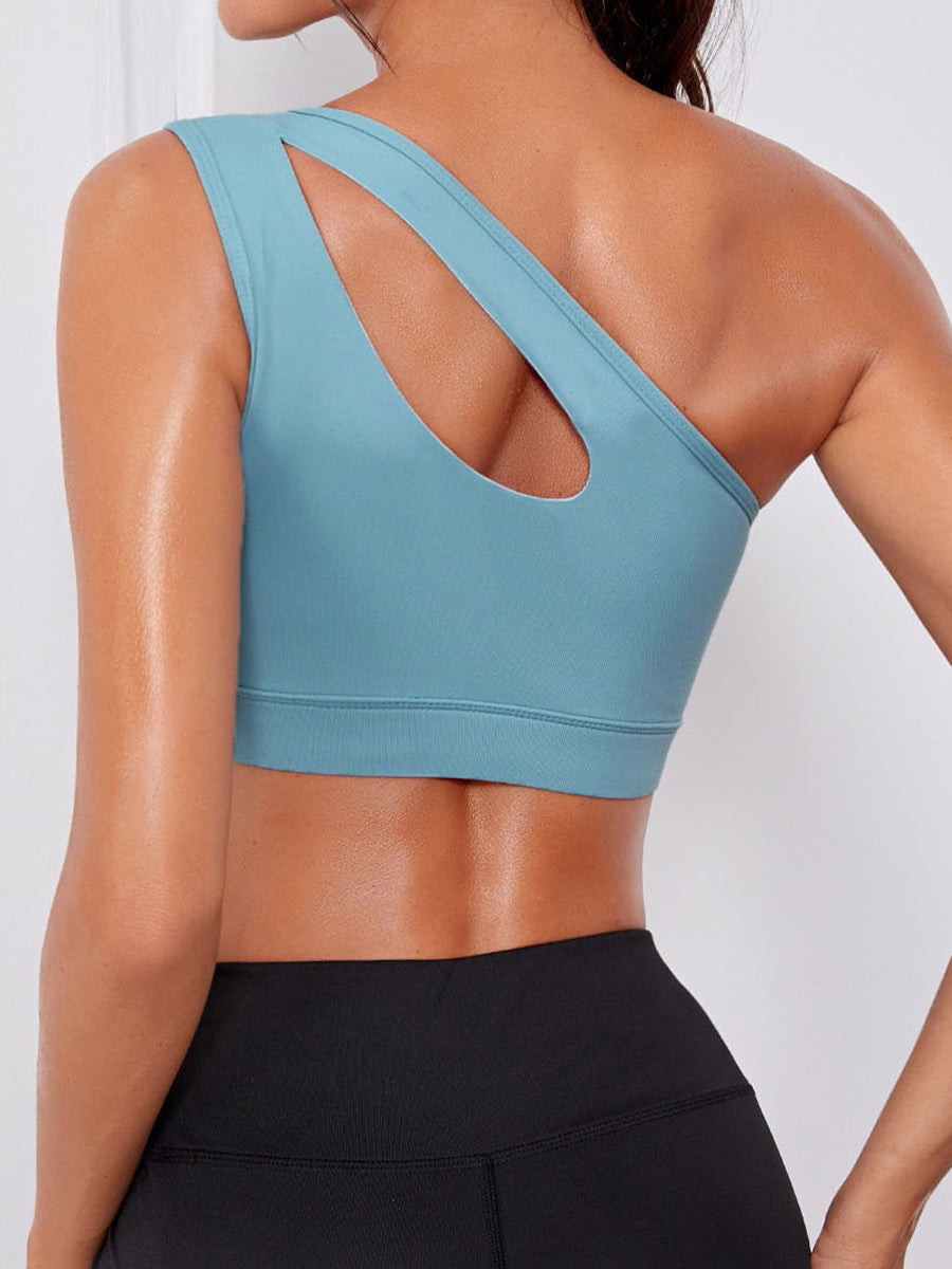Solid Sports One-Shoulder Vest Top Compression Shirt Gym Top