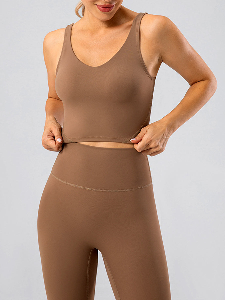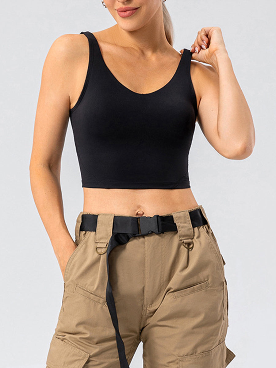 Solid Slim Fit Sports Cami Top Yoga Tank Gym Top with Chest Pads