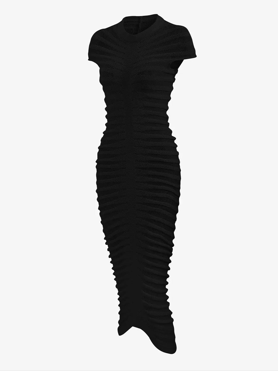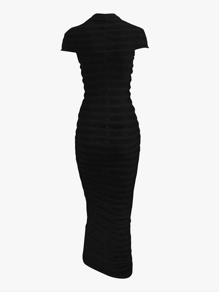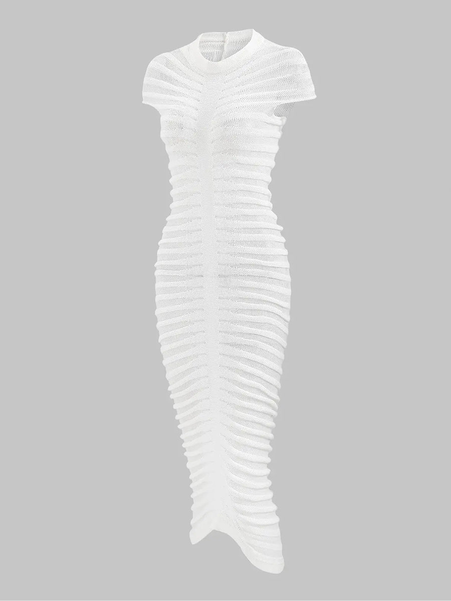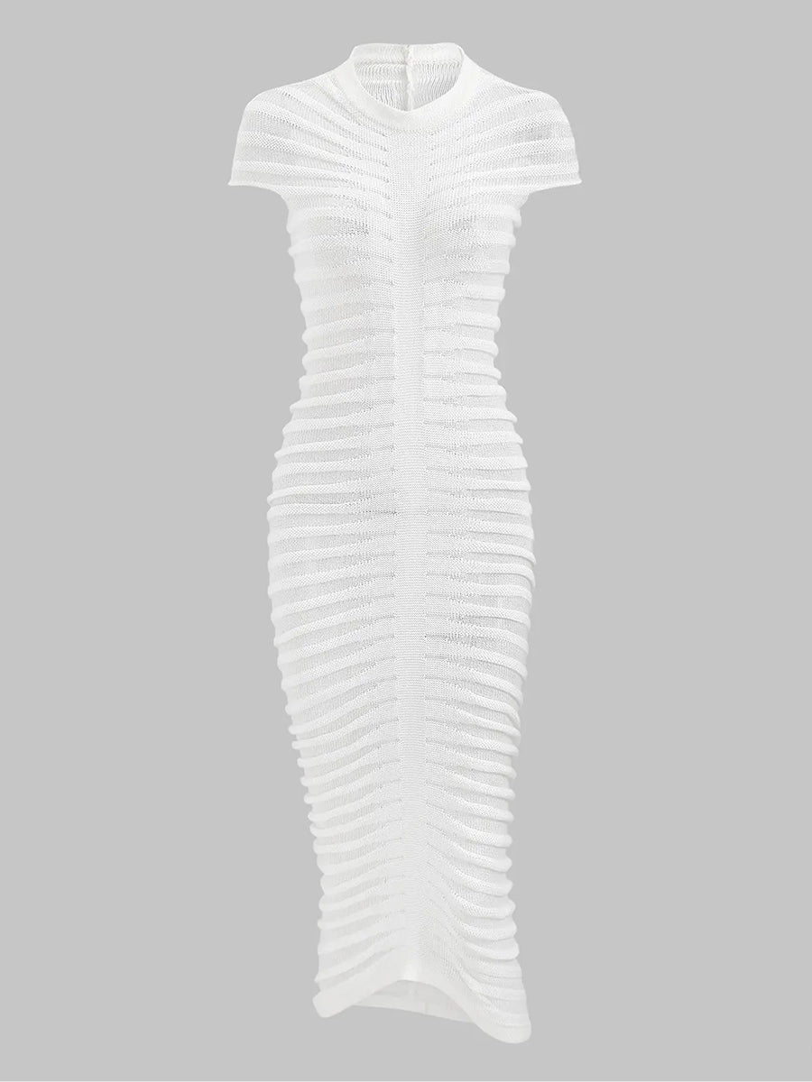 Women's Sexy Knitted See Thru Mock Neck Cap Sleeve Solid Color Midi Bodycon Dress